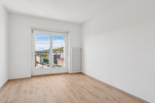 Atouts : • Pièces lumineuses avec parquet et grandes fenêtres • Salle de bain avec baignoire • Vue dégagée et ensoleillée • Appartement calme, côté voie ferrée • Immeuble moderne et bien entretenu