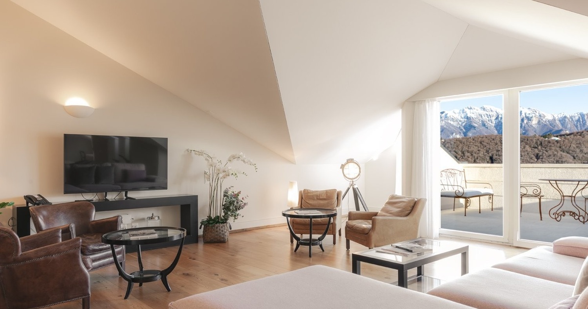Tarchini Group propone in affitto un incantevole attico completamente arredato di 250 mq con ampi terrazzi e splendida vista sul lago e sul parco circostante, situato al settimo piano all'interno del prestigioso contesto residenziale Resort Collina d'Oro.