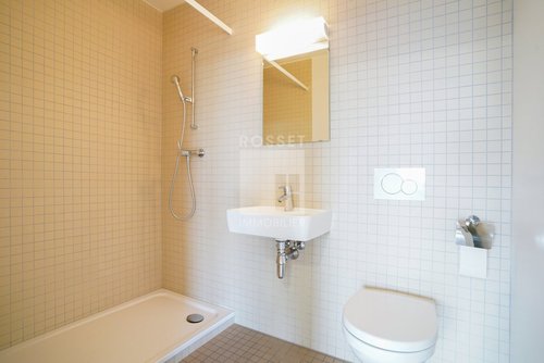 Superbes bureaux modernes et lumineux d'environ 128 m² au 2ème étage avec vue sur le lac. Dans un cadre verdoyant, nous vous proposons une surface de bureaux avec : – Un grand open space – 2 bureaux individuels – Salle de conférence – Kitchenette – Deux WC et une douche – Grande terrasse avec vue sur le lac – Des places de parking sont disponibles à la location, en sus, au prix de CHF 158.-/mois/place. Superb, modern and bright 128 m² office space on 2nd floor with lake view. In a green setting, we offer office space with : – A large open space – 2 individual offices – Conference room – Kitchenette – Two WCs and a shower – Large terrace with lake view – Parking spaces are available for hire at an additional cost of CHF 158/month/parking space