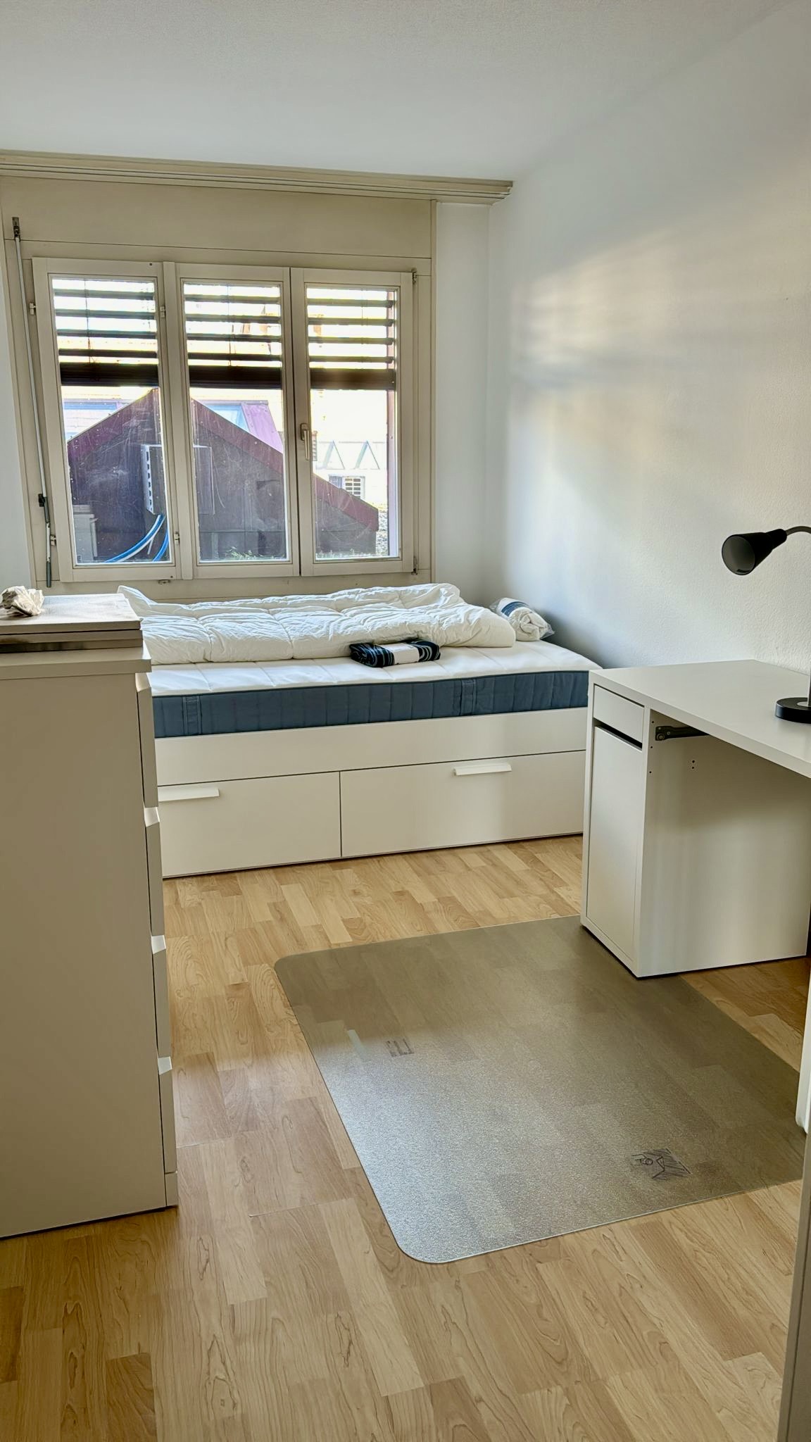 Title: Furnitured room for Rent in Shared FlatHello there,I'm thrilled to offer a fantastic opportunity to share our comfortable and welcoming flat in a prime location. If you are looking for a great living experience with like-minded individuals, then this is the perfect place for you!Key details:- Time to railway station: 2-3min by walk - Shop: 20m, Restaurant: 50m - Available room: 1 - Living space of the room: 11 sqm- Availability: Immediate- Furnished: YES- Cleaning: Yes (common space, weekly, incl. in costs)- Balcony: NO- Shared WiFi: Yes (incl. in rent price)- Covered Parking availability: Yes (optional 100chf/m)- Celler - Yes - Washing machine in the room and tumbler: YES- Renovated: 2024 Room in apartment - 12min from HB Zurich by train with cleaning service incl. DescriptionRoom in shared apartment, cleaning incl. in price, well connected to Zurich HBShared Apartment in DietikonOur apartment available immediately for you, is situated just 230 meters from the SBB station in Dietikon, where you can reach Zurich HB in 12-15 minutes by trains departure every 6-7 min. The apartment is located at Lowenstrasse 11Your Room. The room is modernly furnished with a stylish bed, high-quality mattress, fresh bedding, a wardrobe, desk, chair, lamps. Free WLAN internet access is also provided. You are welcome to bring your own furniture, but it does not affect the rental price.Kitchen. You will share a modern kitchen with other residents. Available for use are a refrigerator, microwave, and induction hob.Bathrooms. There are 2 bathrooms - with shower and bathtub in the apartment, shared with other residents. We place a high emphasis on cleanliness and order, hence the kitchen and bathrooms are thoroughly cleaned once every 7-10 days - what is included in price.Tumbler, washing machine is available in the apartment on top you have drying room downstairs. Also caller is available for small stuff.Students or young persons have priority.General Information. This place is ideal for those seeking an affordable yet comfortable and clean living space. Internet access, a washing machine, and dryer are included in the rent. The minimum rental period is 3 months with termination period of 2 months. The room is dedicated for 1 person only. Within a 100m radius, you will find a hairdresser, bar, gym, restaurants, and shop.You can choose following rooms - please see plan.Price include utilities, internet & cleaning of shared space.PLEASE: The room is only for 1 person, students are preferred. If you are fresh graduate you need to have permit and work. Christopher