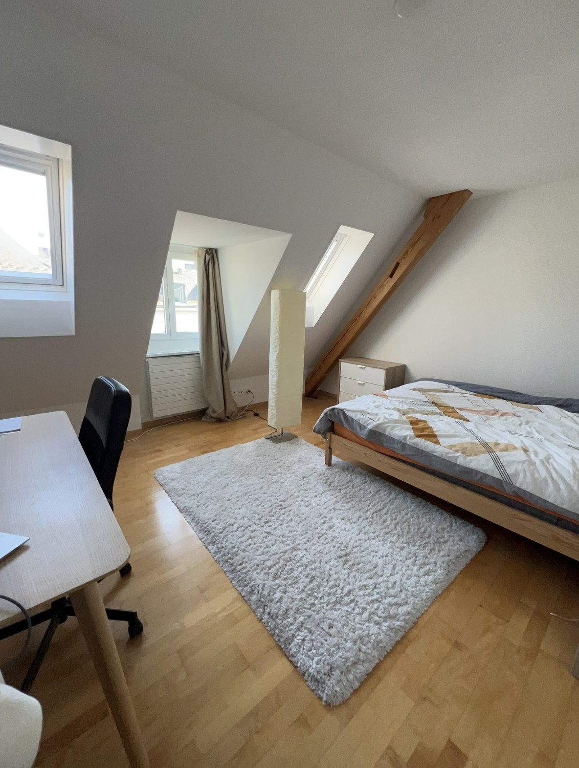 Ich vermiete mein helles und gemütliches 15 m² Zimmer in einer grosszügigen WG. Das Zimmer ist dank der grossen Fenster super lichtdurchflutet und fühlt sich richtig angenehm und wohnlich an – perfekt zum Entspannen oder auch fürs Homeoffice. Die Wohnung ist mit 150 m² echt riesig und modern eingerichtet. Sie liegt im 4. Stock, wodurch es schön ruhig ist (keine direkten Nachbarn 🙌). Highlight ist definitiv der grosse Balkon, auf dem man super die Sonne geniessen oder abends noch zusammensitzen kann. Die Lage ist mega praktisch: Die Migros ist direkt gegenüber und die Tramhaltestelle erreichst du in nur 2 Minuten zu Fuss – also alles, was man im Alltag braucht, direkt vor der Tür. Wenn du Lust auf eine helle, moderne Wohnung mit viel Platz und entspannter Atmosphäre hast, dann könnte das hier genau dein neues Zuhause sein 😊 Deine Mitbewohner sind zwei Bündner: Matias (29) arbeitet als Finanzplaner. In der Freizeit macht er gerne Sport, unter anderem Fussball, Padel, Tennis und Skifahren. Dario (28) hat gerade seinen Master in Rechtswissenschaften abgeschlossen und ist auf der Suche nach einem Praktikum. In der Freizeit macht auch er gerne Sport. Besonders Rennradfahren und Skitouren sind seine Passion.