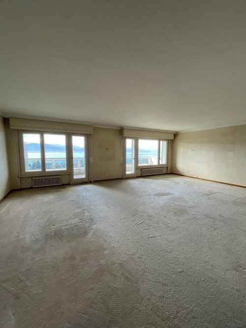 Appartement lumineux de 6 pces situé au 3ème étage d'un immeuble bénéficiant d'une vue exceptionnelle sur l'arc lémanique, disponible de suite et en l'état. Location d'une durée déterminée jusqu'au 31.03.2027 – Entrée/réception – grand séjour avec terrasse sud – suite parentale avec accès aux deux salles d'eau en enfilade – trois autres chambres – une cuisine entièrement équipée Loyer charges comprises CHF 4'400.00/ mois Place de parc à disposition si souhaité à CHF 180.00/mois Pour les visites, veuillez contacter M.. Pellaton au +41 79 829 69 60 Pour déposer un dossier via notre plateforme [ www.flatfox.ch ](http://www.flatfox.ch/) , les documents nécessaires sont les suivants : – copie de pièce d'identité – attestation de l'Office des Poursuites (récent, max. 3 mois) – 3 dernière fiches de salaire