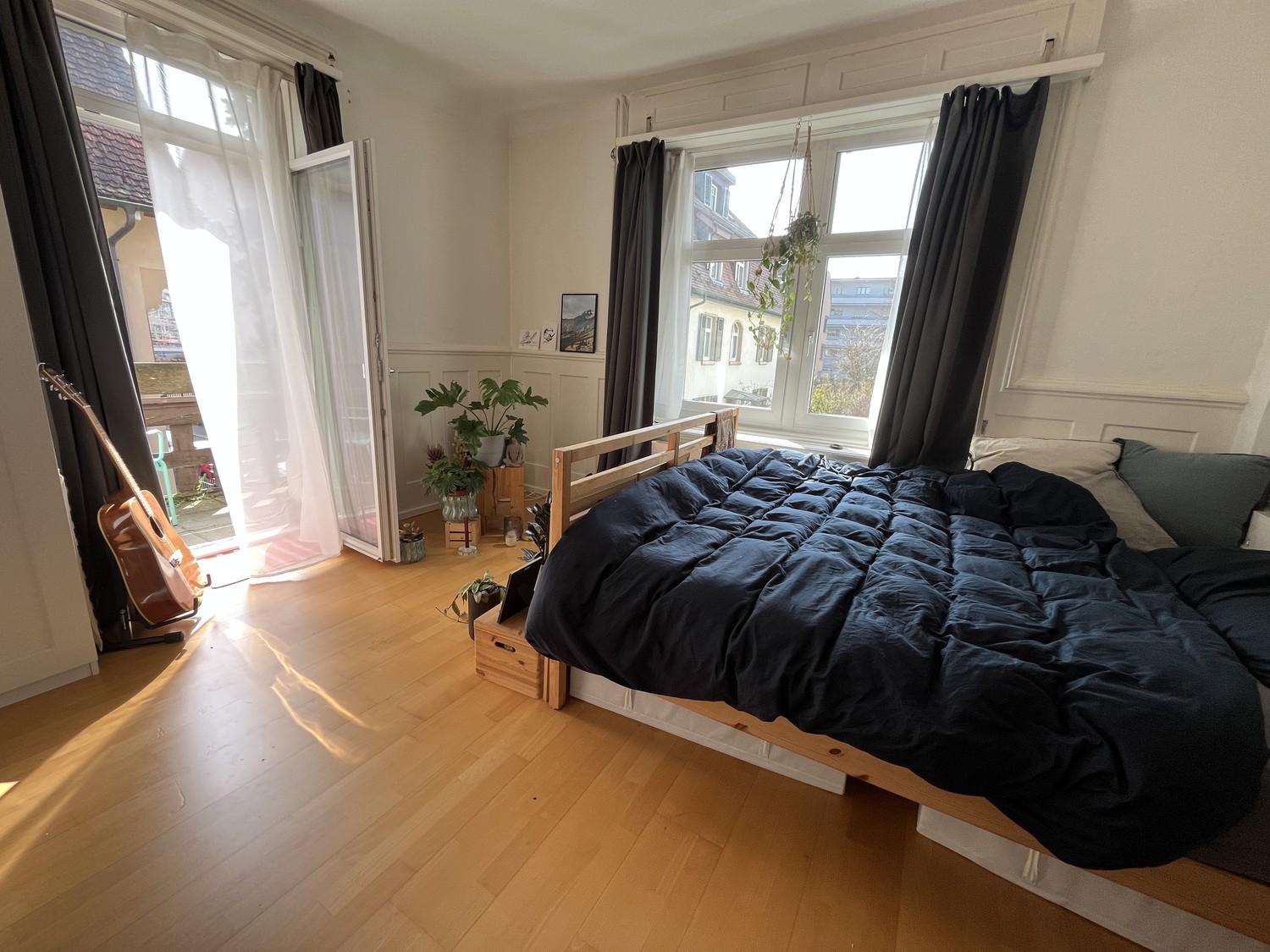 Hey!Ich suche eine Nachmieterin (FLINTA*) zwischen 24-35 für mein WG-Zimmer per 1. Mai oder nach Vereinbarung. Das Zimmer ist geräumig und hell und verfügt über einen Balkon. Der Schrank kommt nicht mit und kann gerne abgekauft werden!Zur WG:Du wohnst zusammen mit Cyrill, 28i, der im Kafi in der Nähe arbeitet. Er mag es, wenn etwas läuft - dies aber meist ausser Haus. Trotzdem ist Besuch jederzeit und mega willkommen! Dies gilt jedoch leider nicht für Haustiere (ausser du hast Hühner, Cyrill würde gerne Hühner haben).Die WG ist ordentlich und Ämtli werden aufgeteilt und sind wichtig - ihr wollt eine saubere WG-haben. Die Wohnung ist in einem Denkmalgeschützen Haus, verfügt daher über viel Charme innen sowie aussen, mit einem schönen Garten. Die verschiedenen Mietparteien kennen sich und teilen sich die Waschküche und das selbe Verständnis für eine nachbarschaftliche Beziehung. Gerne helfen wir unserem lieben Albi (80) auch mal beim Sofa-verschieben, oder Pellets nachfüllen. Wir wissen aber alle unsere Privatsphäre zu schätzen, so gilt vor allem: alles kann, nichts muss :)Natürlich gibt es noch viel mehr Tolles über die WG zu sagen! Wenn du Interesse hast, melde dich gerne bei mir mit:- Name, Alter- Was dich herumtreibt im Leben, was dich begeistert- Wann du Zeit hättest, sich auf einen Tee / Kaffee zu treffen Ich freue mich, von dir zu hören!Liebi GrüessliZoe
