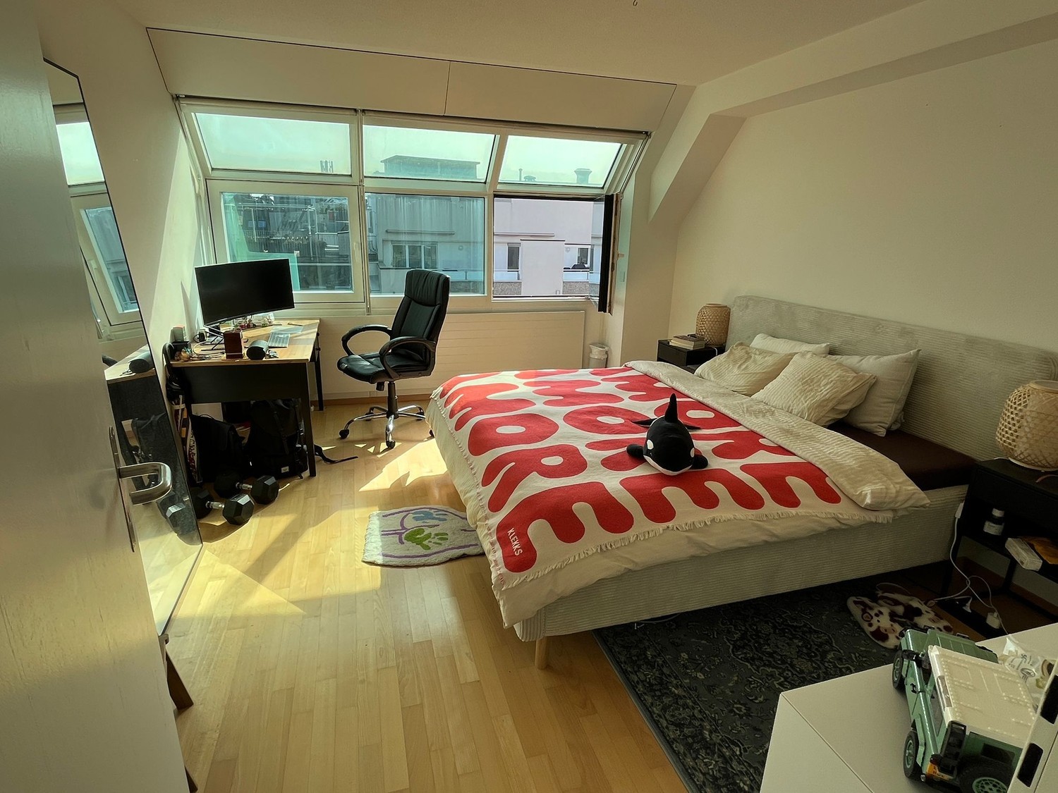 A room is available in our beautiful and exceptionally spacious flat in a prime central location. Important: The room is available until 31 March 2027 only, as the building is scheduled for renovation afterward. You would be sharing the flat with Rebecca (25), who is Swedish, works in finance, and enjoys swimming, and Benjamin (29), who is Swiss, works in consulting, and enjoys playing 8-ball pool. We are looking for a working professional aged 25–30 who would be a good fit for the flat and enjoys a friendly, easy-going, and respectful home environment. Why this place is special This flat has a lot to offer and is much more than just a room: Huge, light-filled living space with a total flat size of 180 m² Massive shared living area with plenty of natural light Private washing machine and dryer in the flat Two ovens, two dishwashers, and a large fridge Excellent central location: approx. 550 m to Enge station approx. 700 m to Rentenwiese approx. 750 m to Bahnhofstrasse Super convenient shopping, with groceries available 7 days a week at Enge station Shared walk-in closet with built-in wardrobe walls Additional storage room in the basement Optional car and motorbike parkingIf you are interested, please send us a short description of yourself