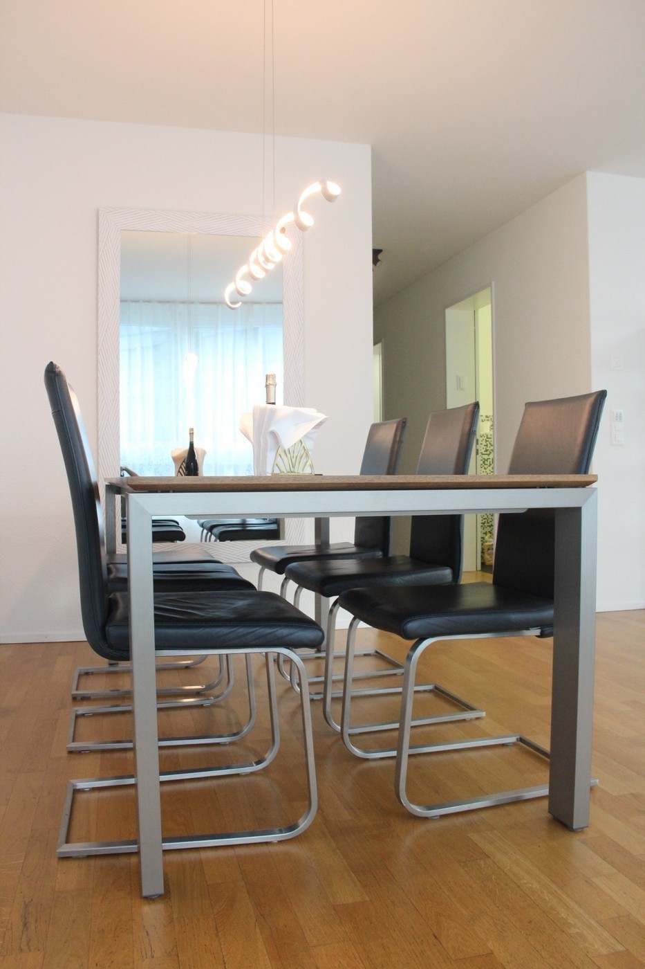 About MydiHei Apartments: MydiHei Apartments offers stylishly designed and fully furnished apartments for singles, couples, families, and companies, and also private rooms in shared flats through modern co-living arrangements with well laid flatshare rules and regular cleaning of common areas. We focus on quality, comfort, and functionality, providing flexible living solutions that adapt to different lifestyles and business needs. With high design standards and flexible lease conditions. Renting process can be as fast as few hours. MydiHei ensures a hassle-free and premium living experience. MydiHei Apartments offers: 1\. Move within our vast Zurich apartments network any time for various reasons for example when your work location changes or you like to upgrade to bigger apartment etc. 2\. Official address registration with all our apartments 3\. Flexible monthly stay 4\. Attractive discount for students and interns - 5-10% (depends upon the duration) About the room: Room furnishing: large double bed (160x200 cm), bedside table, cupboard, working table and chair. Room no: 4, refer layout Room pictures: given The room is for single person only. Rent & Conditions: Monthly rent: CHF 1475.- Rent “all inclusive”: heating, water, waste water, internet, electricity and weekly cleaning of common areas Availability: Immediately Termination notice: 1 Month Video viewing: possible, contact +41 76 804 55 16 (also whatsapp) About the apartment: Floor: Ground Floor Lift: available Furnishing: The apartment is fully furnished as in pictures Fully equipped kitchen with all the utensils, cutlery, dine and wine crockery, and all appliances including refrigerator, toaster, oven, dishwasher, microwave etc. Other necessary items such as steam iron, ironing board, vacuum cleaner etc. High speed internet and wifi-modem facility No. of bathrooms: 1 Washing facility: Common About location: Well connected location in a quiet residential area. Thanks to the train station at walking distance, commute to Zurich city center is less than 30 mins* The apartment is located next to all facilities including shopping, restaurants, cafes, bars, bakeries etc.