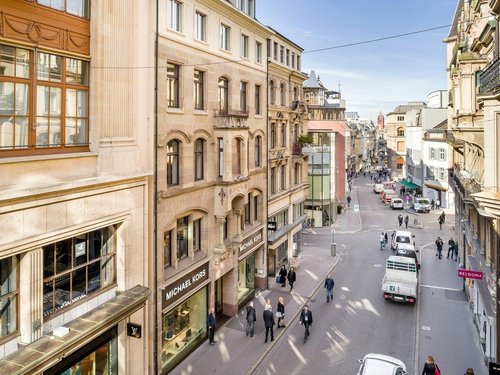 Die Liegenschaft befindet sich an bester Einkaufslage im Herzen Basels, baurechtlich in der Tourismus-Kernzone und hat damit die Möglichkeit, Sonderöffnungszeiten und Sonntagsverkäufe abzuhalten. Luxuriöse Labels wie Louis Vuitton, Hermès, Lacoste, COS, Max Mara, Breitling und Cartier gelten in diesem Abschnitt der Freien Strasse zu den Nachbarn der Mietfläche. Die Freie Strasse, sowie angrenzende Gassen, wurden im Hebst 2024, vollständig und kostenintensiv saniert. Dadurch erstrahlt die Einkaufsstrasse Basels in einem neuen und hochwertigen Look. Das Mietobjekt bietet folgende Highlights: • ca. 263 m² grosszügige und offene Retailfläche, über zwei Stockwerke (EG - 1.OG) • ca. 128 m² Lagerfläche im Untergeschoss • grossen Fensterfronten erfüllen die Fläche mit der überzeugenden Eleganz und grosszügigen Helligkeit • charakteristische Aussenfassade unterstützt den luxuriösen Flair • Lift • Klimatisiert • WC-Anlagen • exklusive Lage an ältester und wichtigsten Einkaufsstrasse Basels