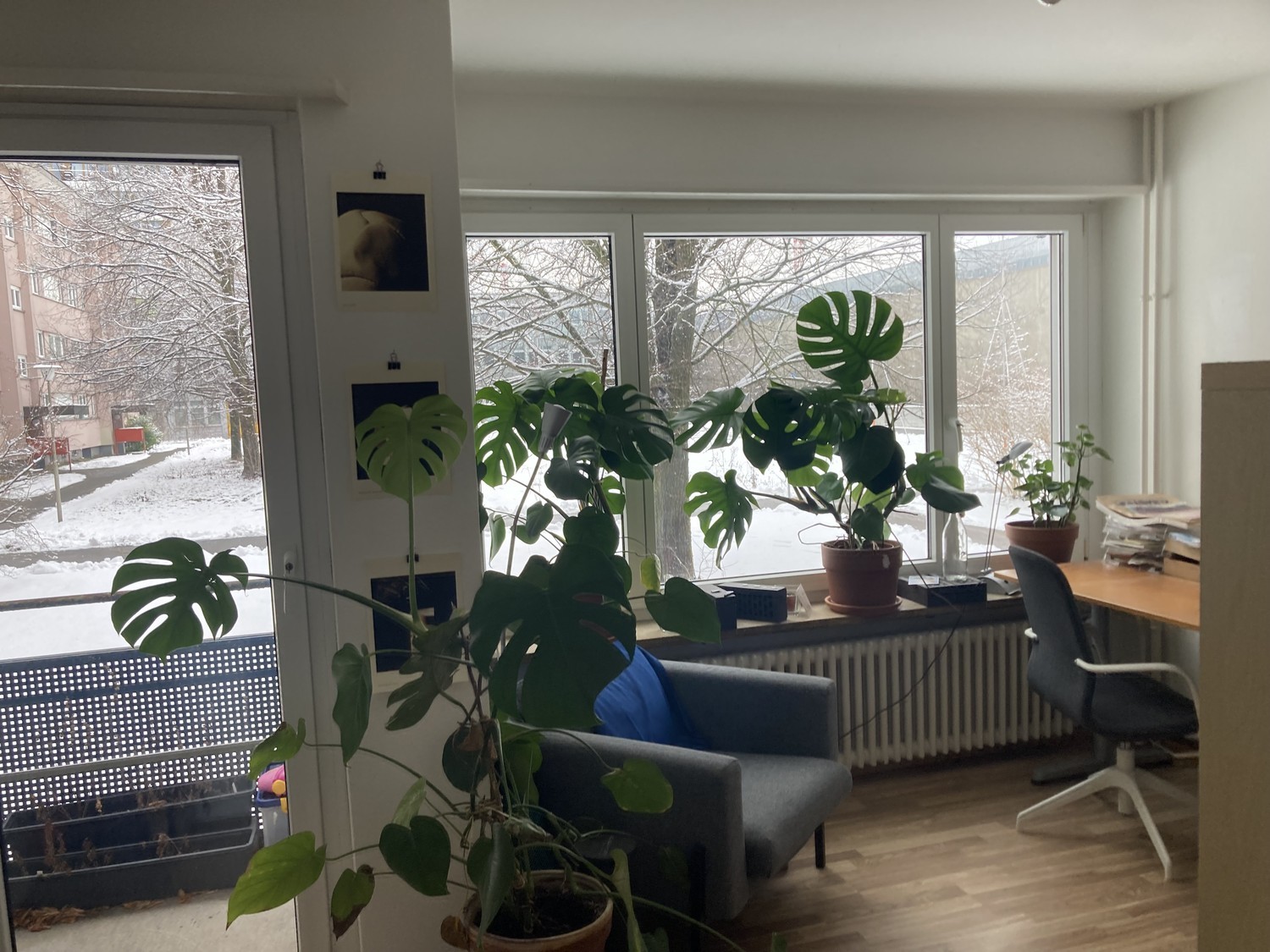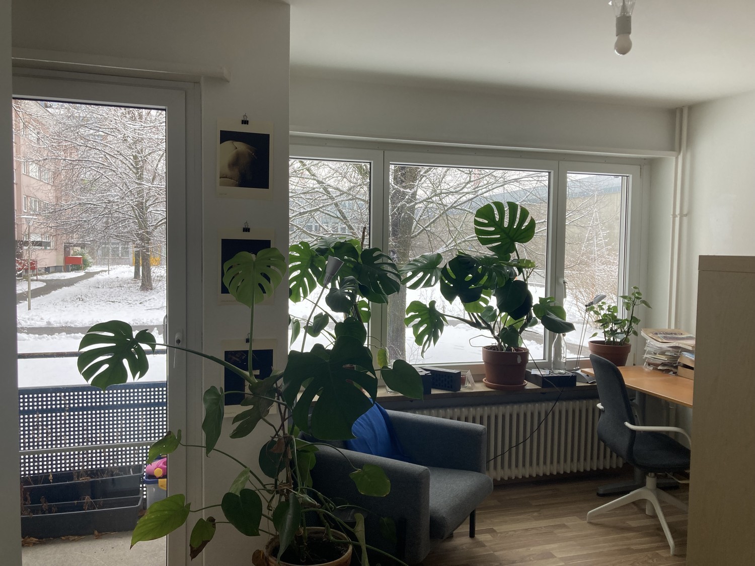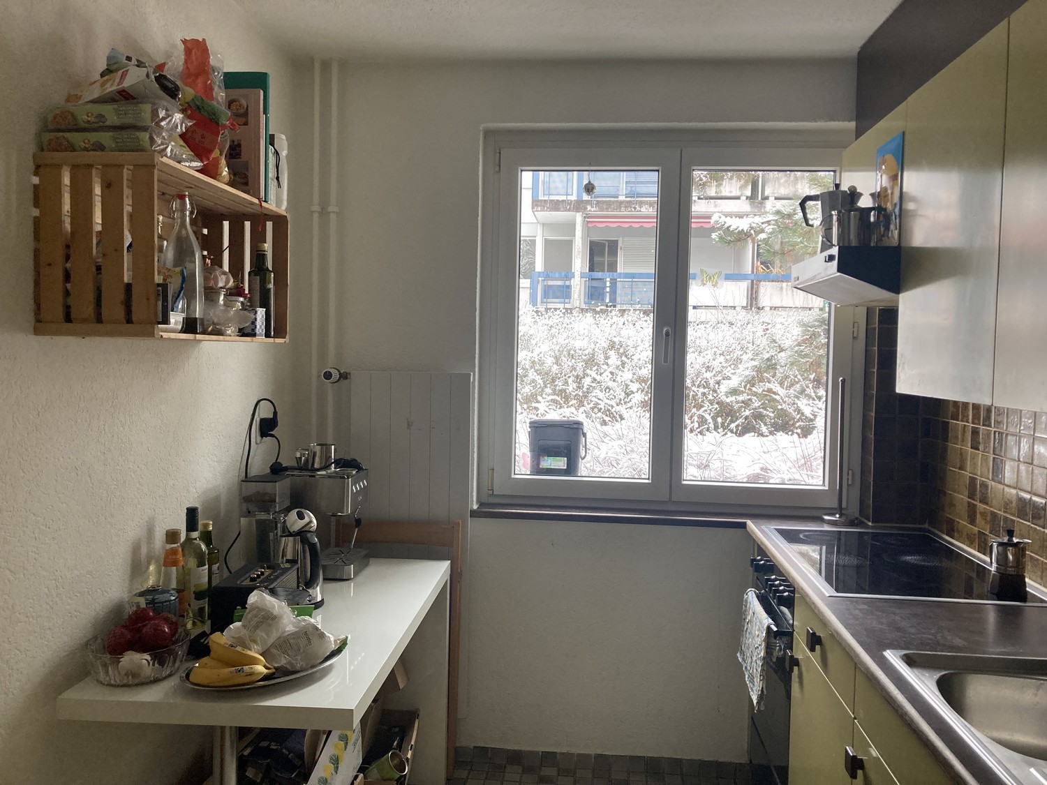 Das WG-Zimmer ist nur für Studierende/Praktikant*innen etc. D: (english below) Das WG-Zimmer hat ein großes Fenster mit Blick ins Grüne und einen Zugang zum Balkon, dadurch ist es sehr schön hell. Außerdem gibt es in der WG einen kleinen aber feinen Wohn-/Essbereich, eine Küche und ein Bad mit Badewanne. Im Haus gibt es außerdem eine gemeinsame Waschmaschine mit Trockenraum und einen Fahrradkeller. Das Zimmer ist unmöbliert. Die WG befindet sich in sehr ruhiger Lage zwischen großen Bäumen, direkt am Ueberlandpark. Zur Tramhaltestelle „Ueberlandpark“ sind es drei Minuten zu Fuß und mit der Tram ist man innerhalb von 20 Minuten am HB. Der Schwammendingerplatz (mit etlichen Einkaufsmöglichkeiten: Coop, Migros, Denner…) ist nur 5 Minuten zu Fuß entfernt. Deine WG-Mitbewohner sind Max und Marius. Beide machen ein Praktikum in einem Architekturbüro und sind gerne draußen unterwegs. Bisher führen wir ein geselliges WG-Leben und Kochen regelmäßig zusammen. Da das Haus abgerissen wird, ist das Zimmer nur Befristet für den April zur Miete (eventuell könntest du im Mai noch bleiben). Wir freuen uns auf deine Nachricht! E: The room is only available for students, interns, etc. The shared flat room has a large window overlooking greenery and access to the balcony, which makes it very bright and pleasant. In addition, the flat features a small but cozy living/dining area, a kitchen, and a bathroom with a bathtub. The building also offers a shared washing machine with a drying room and a bicycle storage room. The room is not furnished. The flat is located in a very quiet area among large trees, right next to Ueberlandpark. The “Ueberlandpark” tram stop is just a three-minute walk away, and from there it takes about 20 minutes by tram to reach the main station. Schwamendingerplatz (with various shopping options such as Coop, Migros, Denner, etc.) is only a five-minute walk away. Your future flatmates are Max and Marius. Both are doing internships at an architecture firm and enjoy spending time outdoors. So far, we have had a sociable flat-sharing experience and regularly cook together. Since the building is going to be demolished, the room is available for rent for April only (you might possibly be able to stay in May as well). We look forward to hearing from you!