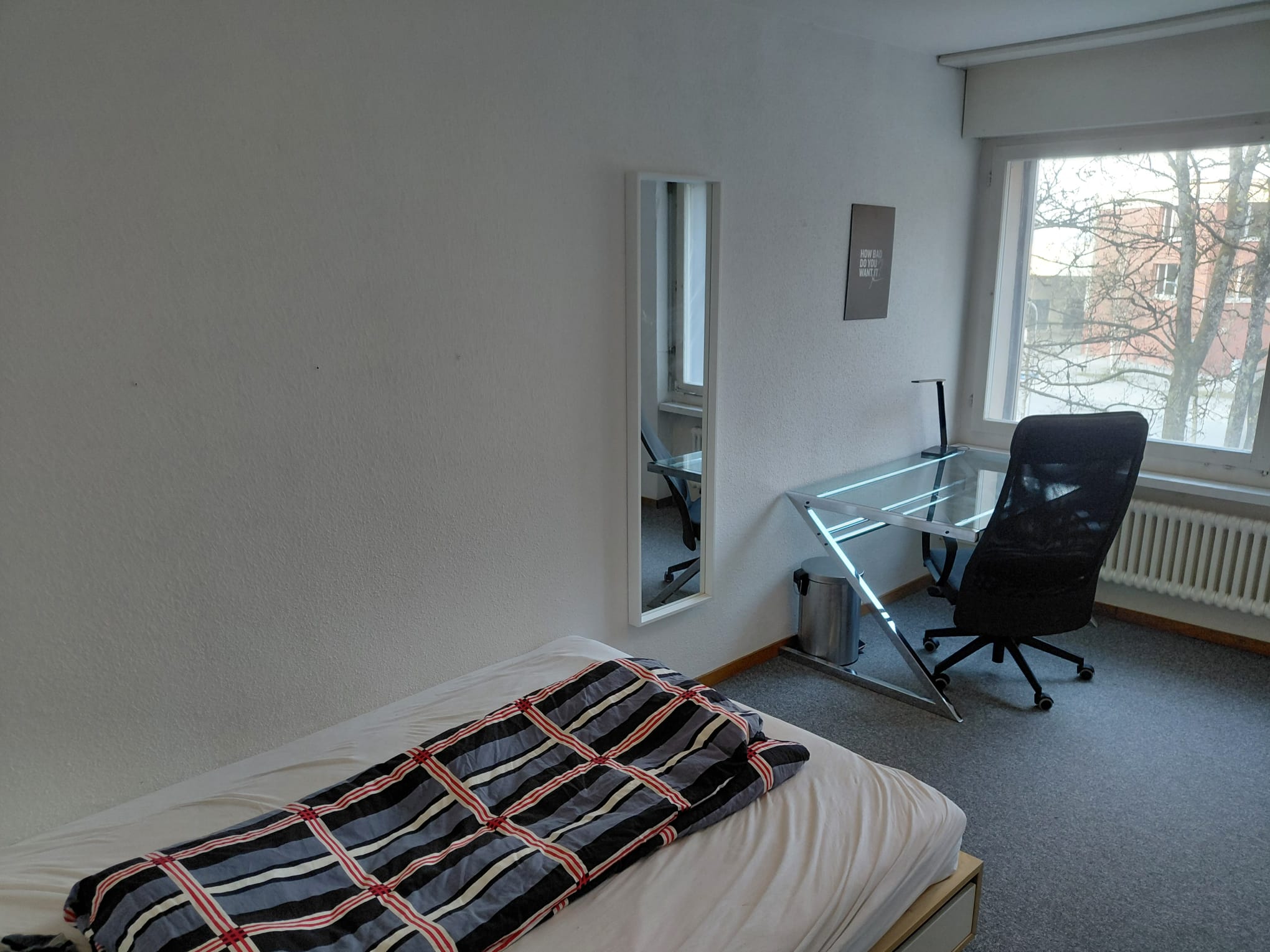 Das Zimmer ist ca 14 Quadratmeter gross und in einer 6er WG. Die 6er WG hat 2 Wc's, 2 Küchen und 2 Wohnzimmer. Die Lage ist sehr ruhig und das Zimmer bekommt viel Licht.Wir sind 5 Studenten welche alle vollzeit studieren. Wir sind alle sehr sportlich und mögen es sich ab und zu am Abend zu unterhalten.Ich untervermiete das Zimmer mindestens bis zum 14.09.2026. Du musst alle Mietbedinungen der WOKO erfüllen.