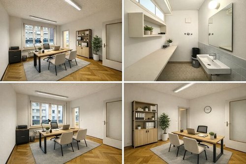 attraktive Büroäumlichkeit in sehr zentraler Lage - Nähe Hauptbahnhof Biel und diversen Einkaufsmöglichkeiten - Lift vorhanden Per sofort vermieten wir helle und freundliche Büroräumlichkeiten im 1. Obergeschoss an zentraler Lage beim Bahnhof Biel. Die Räume überzeugen durch grosse Fensterflächen, welche für eine angenehme Arbeitsatmosphäre mit viel Tageslicht sorgen. In den Büros sind praktische Einbauschränke vorhanden, die grosszügigen Stauraum bieten. Die Räumlichkeiten sind mit hochwertigen Parkett- sowie pflegeleichten PVC-Belägen ausgestattet und eignen sich ideal für unterschiedliche Büronutzungen. Ein besonderes Plus stellt die kleine Terrasse dar, die zusätzlichen Komfort bietet und sich hervorragend für Pausen oder ähnliches eignet. HINWEIS: Die Bilder enthalten generierte Einrichtungsbeispiele.