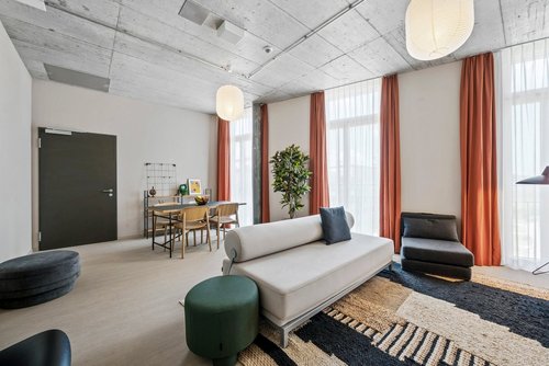 Beyond the comfort of your self-sufficient apartment, Ariv Zug offers a range of shared amenities to elevate your experience. Connect and collaborate in the bright community kitchen, co-working spaces, and meeting rooms, or focus on wellness in the fully-equipped gym. For relaxation, there’s a cozy cinema, a stylish community lounge, and a scenic roof terrace where you can unwind. At Ariv Zug, you’ll find everything you need for a fulfilling and enjoyable stay, blending private comfort with vibrant communal living.