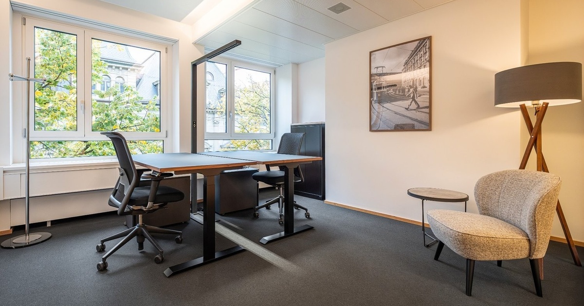 Das exklusive Büro ist ausgestattet mit elektrisch höhenverstellbaren Schreibtischen, ergonomischen Bürostühlen und einem modernen Whiteboard. Die Klimaanlage sorgt für angenehme Temperaturen, während grosse Fensterfronten den Raum mit Tageslicht fluten und den Blick auf den Paradeplatz oder den historischen Zentralhof freigeben.