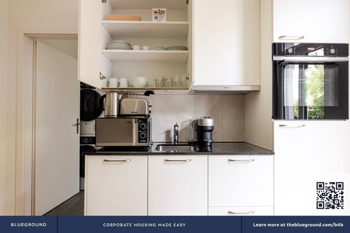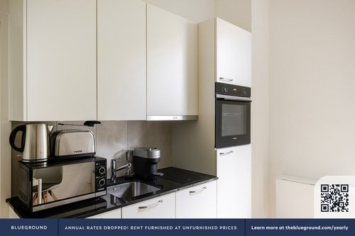 Wie bei jedem Blueground Wohnung finden Sie einen durchdacht gestalteten Raum mit schönen Möbeln. und eine voll ausgestattete Küche in diesem Studio Immobilie. Und dank unserer hochwertigen Matratzen können Sie sich entspannen, weil Sie sich immer wie zu Hause fühlen werden. Wenn Sie Lust auf etwas Spaß haben, können Sie die Zurich -Atmosphäre genießen oder sich die Unterhaltung mit dem kabellosen Premium-Lautsprecher oder dem Smart-TV direkt nach Hause holen. Diese Wohnung bietet auch Wäscherei in der Wohnung.
