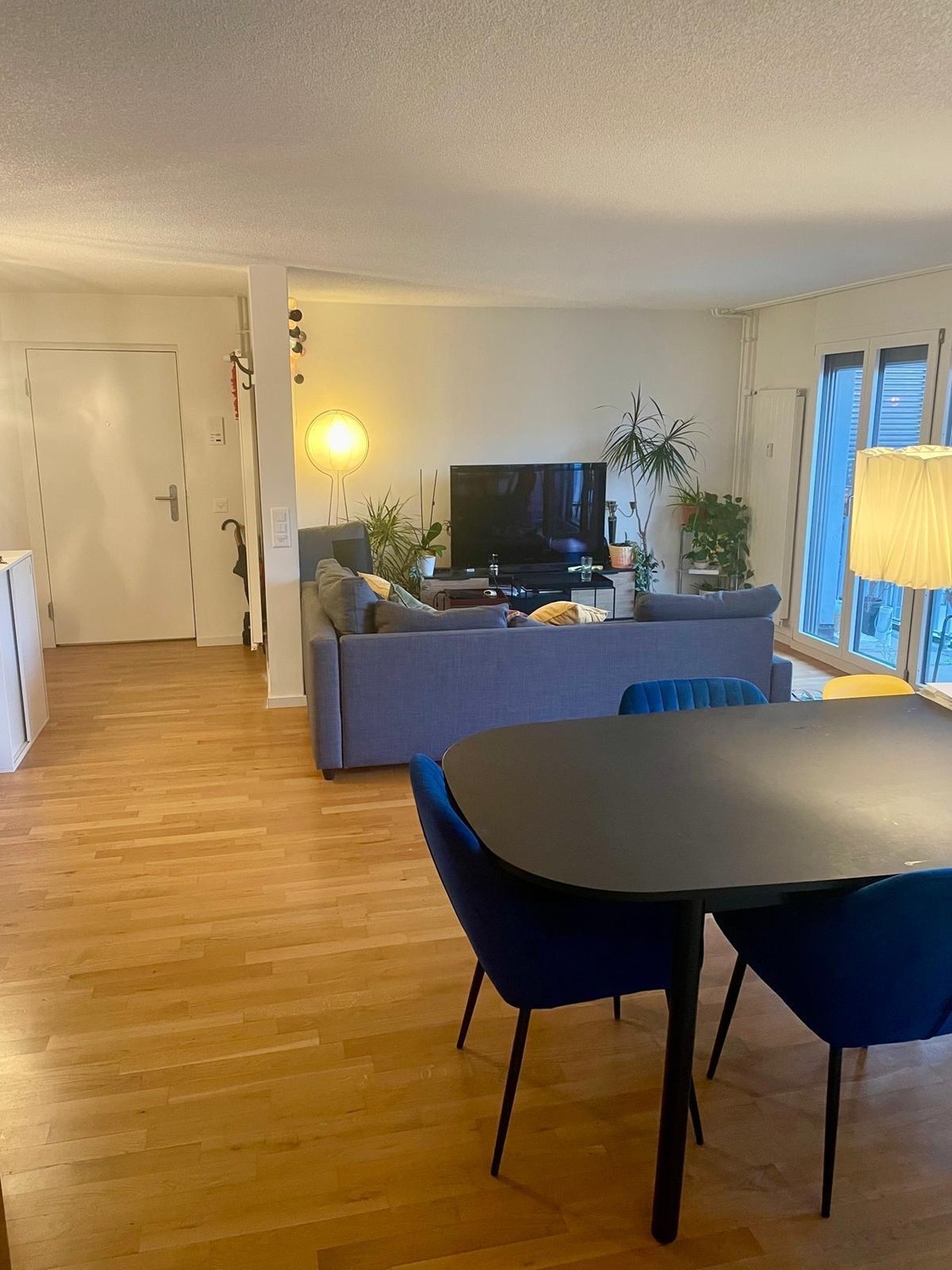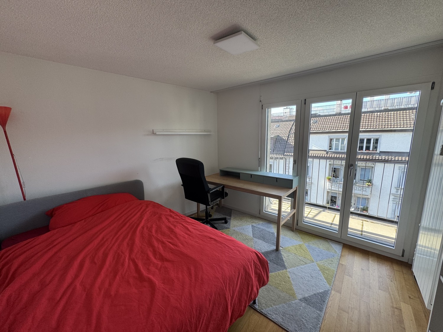 Room available from 1st May to 30th September (flexible end) in a flat located very close to the Zurich lake.There are two other flatmates residing in the flat, which has two shared bathrooms, a large living room and kitchen, washing machine and two balconies.The flat is located around 10 minutes walking from Stadelhofen station and 15 minutes from Zurich HB.
