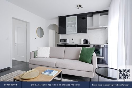 Dieses Blueground Wohnung bietet flexible Mietoptionen, sodass Sie es für einen Monat, ein Jahr oder länger buchen können.Wir sind sehr stolz darauf, dass alle gezeigten Fotos in unseren eigenen Einheiten mit unserer tatsächlichen Einrichtung aufgenommen wurden. Das heißt, wir aktualisieren regelmäßig unsere Dekoration und Möbelanordnung, die von dem abweichen kann, was abgebildet ist.