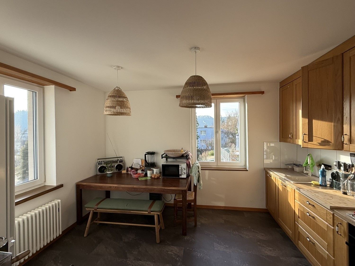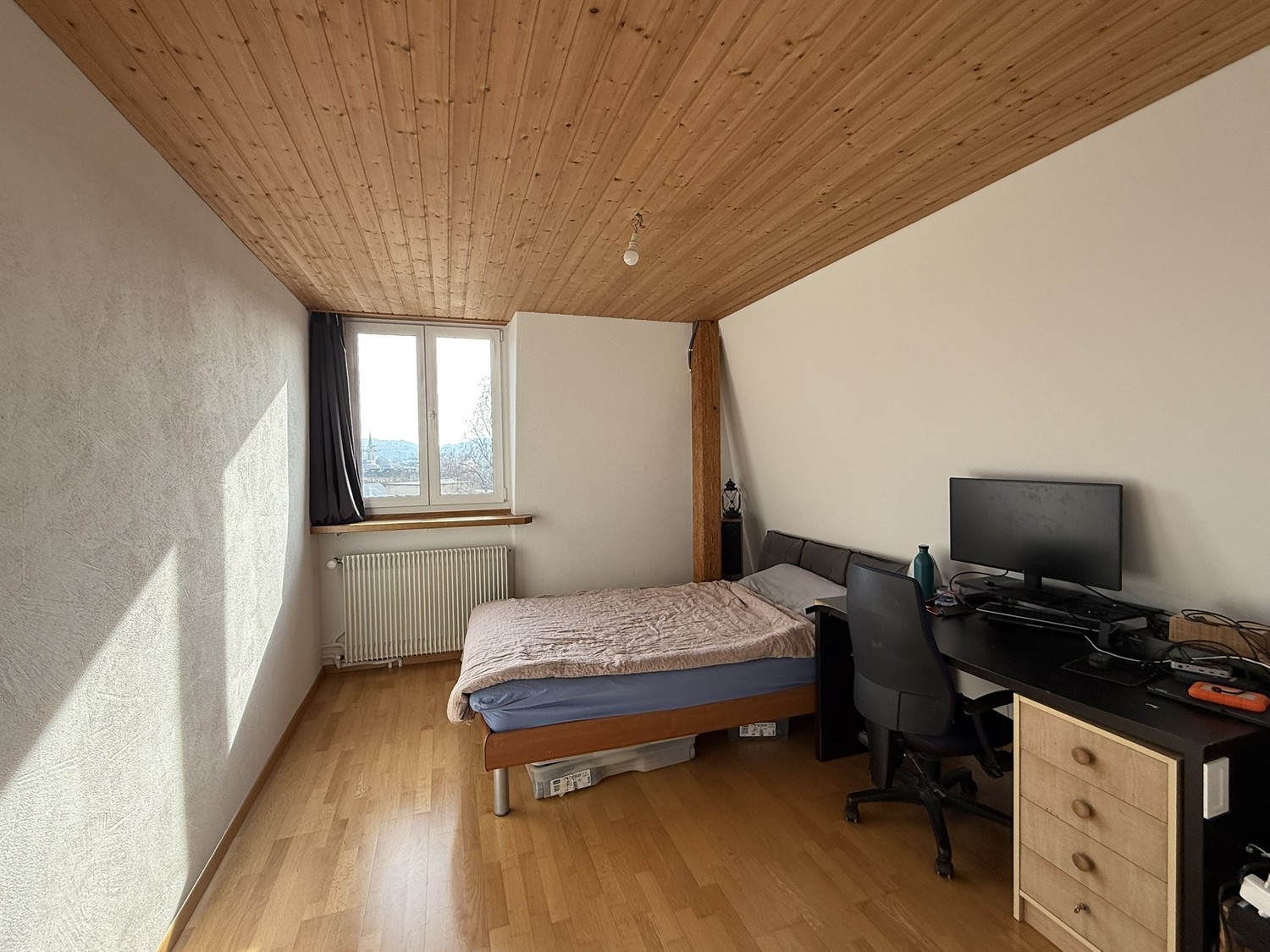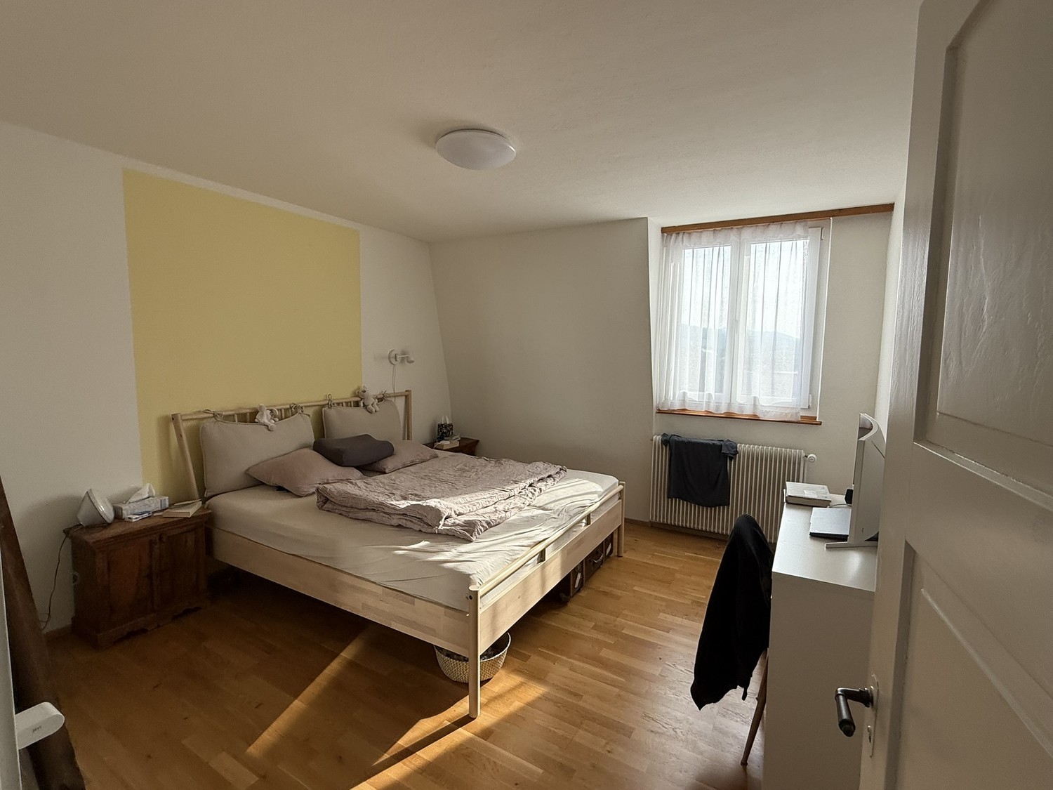 Wohnung & Lage Per 1.3. oder nach Vereinbarung werden in einer 4.5-Zimmer-WG (ca. 110 m²) in Winterthur ein bis zwei Zimmer frei. Die Wohnung verteilt sich über drei Stockwerke. Auf jedem Stock gibt es ein Bad mit Dusche und WC. Es gibt einen gemeinsamen Wohn- und Küchenbereich, einen grossen Eingangsbereich mit genug Stauraum, einen grossen Garten zur Alleinnutzung für die WG (nach hinten ausgerichtet), einen Schopf für Aussensachen und Platz für Velos sowie ein kleines Kellerabteil. Ein privater Parkplatz ist vorhanden. Die Lage ist zentral und trotzdem ruhig. In ca. 5 Velominuten ist man am Bahnhof, die nächste Busstation liegt 2 Gehminuten entfernt. Migros, Coop und Aldi sind rund 10 Minuten zu Fuss erreichbar. Ebenso schnell ist man an der Töss zum Baden oder im Wald. Die Wohnung liegt genügend weit von der Hauptstrasse entfernt, was es trotz zentraler Lage angenehm ruhig macht. Zimmer & Einzug 13 m² – CHF 730.– inkl. NK 15 m² – CHF 820.– inkl. NK (beide im mittleren Stock) Einzug ab 1.3. möglich, idealerweise zwischen 1.3. und 1.5. (oder nach Absprache). Gesucht Gesucht werden Mitbewohner:innen im ähnlichen Alter (grob ca. 30–40), wichtiger als das Alter ist aber, dass es zwischenmenschlich stimmt 😊. Du suchst kein reines Zweckwohnen, sondern hast Lust auf ein entspanntes, unkompliziertes Zusammenleben. Gleichzeitig muss die WG nicht das Zentrum deines Lebens sein, ein eigenes Umfeld, Freundeskreis und Alltag ausserhalb sind selbstverständlich. Schön wäre ein ausgewogenes Miteinander: ab und zu an die Töss baden gehen, ein Bier auf der Steinberggasse trinken oder spontan an ein Konzert. Lust im gemeinsamen Garten Gemüse anzupflanzen, mal zusammen kochen, im Garten über den Job ausweinen oder sich auch mal einfach im eigenen Zimmer verbunkern 🙂 Alles ganz ohne Erwartungsdruck, aber mit Offenheit füreinander. Wichtig sind ein respektvoller Umgang auf Augenhöhe, Gleichberechtigung und solidarisches Miteinander, eine klare Haltung gegenüber diskriminierenden Denkweisen, Humor und Lockerheit, ein bewusster Umgang mit Ressourcen sowie ein gesundes Mass an Sauberkeit und Ordnung. Zur WG Bisher haben wir zu zweit in der WG gewohnt, die bisherige Mitbewohnerin zieht aber per 1.3. aus. Nun besteht die Möglichkeit, eine Dreier-WG daraus zu machen, was vom Platz her gut passen würde. Eine Zweierkonstellation wäre je nachdem aber nach wie vor denkbar. Das kleinere Zimmer könnte unterdessen bereits vergeben sein (28, w), aktuell ist aber noch nichts definitiv. Ich (m, 38) bin Primarlehrer, liebe Musik, schaue sehr gerne Filme und bin gerne in Winterthur unterwegs. Im Frühling / Sommer versuche ich, meine Garten-Skills zu verbessern, bin aber froh um jede Mithilfe oder eigene Ideen im Garten 🙂 Der Beamer wird die Wohnung leider ebenfalls per 1.3. verlassen. Wenn du also einen Beamer im Handgepäck mitbringst, gibt es definitiv einen Pluspunkt 😜 Falls dich das anspricht, schreibe mir doch ein paar Zeilen über dich. Freue mich, von dir zu hören 😊