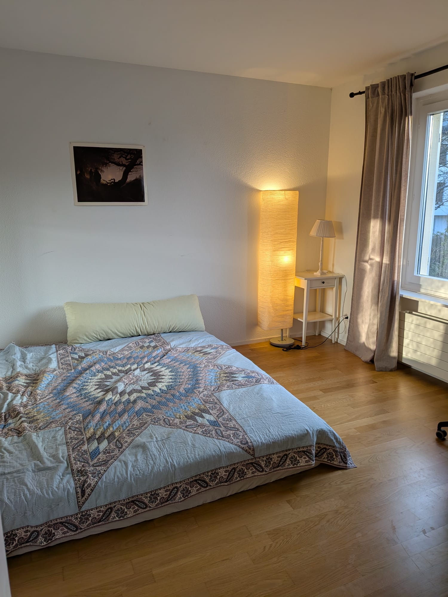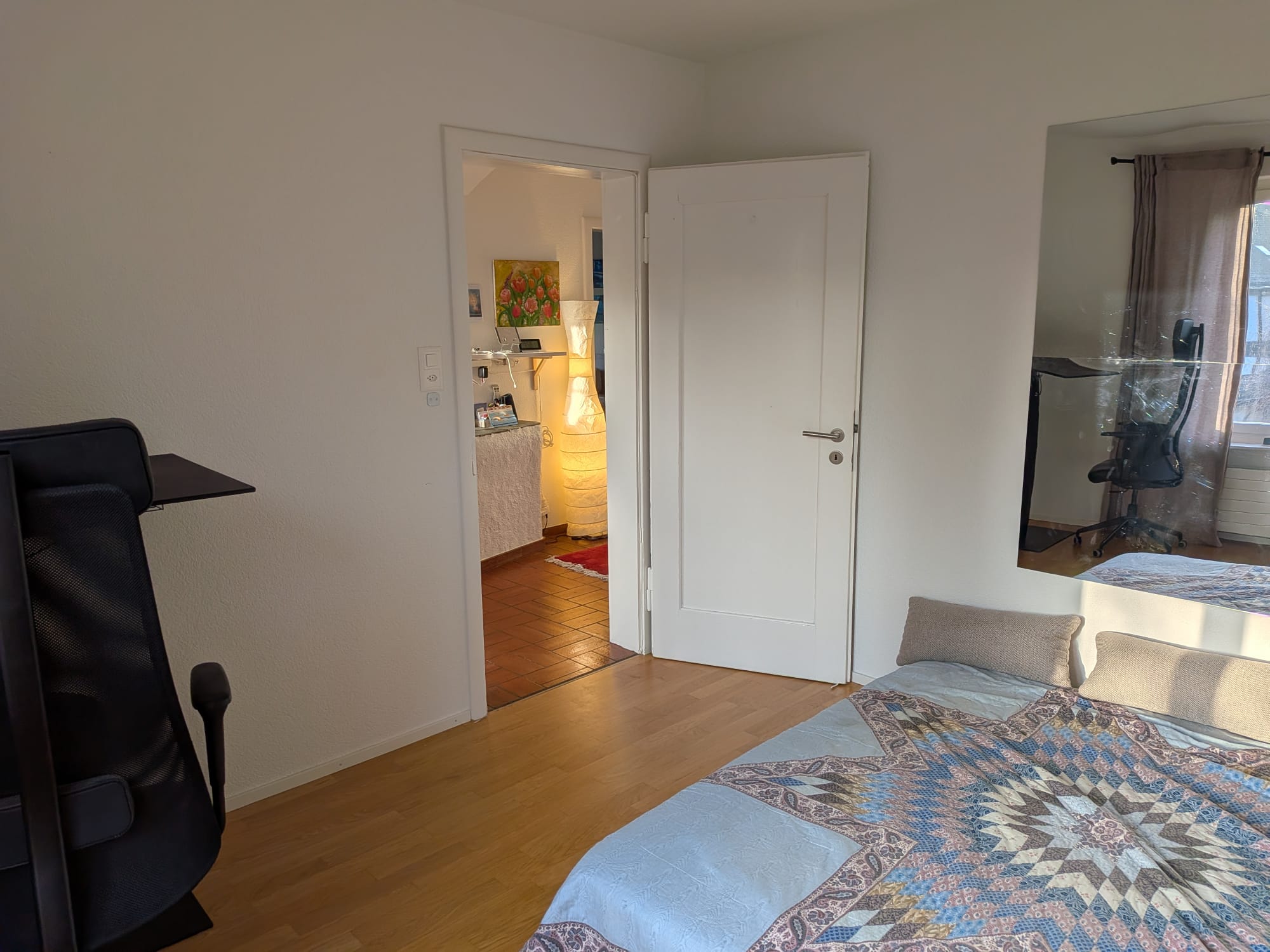 You will move in to a private room in a bright, beautifully maintained 3.5-room apartment that features views of the Alps from the living room. Your room can come furnished or unfurnished. Our home in Wipkingen is perfect for a professional seeking a clean, organized, and quiet sanctuary. Käferberg and Hönggerberg are very close for a run or a walk to refresh at any time of the day. We have Coop, Migros, and Denner around the train station of Wipkingen as well as new cafés and restaurants, giving the neighborhood a very cozy atmosphere. Walking down to the Limmat takes only 10 minutes to have a dip in the summer. For commuting, the closest bus station is Lehenstrasse (Bus line 46), which connects directly to Zürich HB. There is also a direct train from Wipkingen to Zürich Airport that takes only 10 minutes.I work as a project manager (46yrs old, female). I love sports and outdoors, but am also spiritual and love meditations.