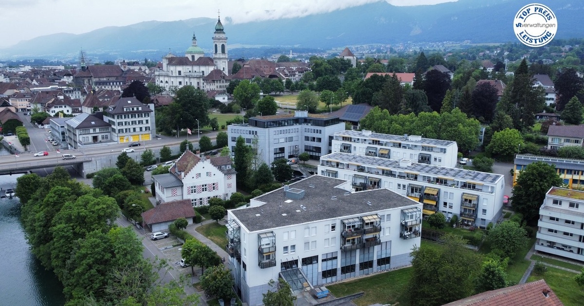 Wir vermieten eine repräsentative und grosszügige Büro- und Gewerbefläche. Dieses attraktive Angebot für Ihre Geschäftsidee befindet sich im 1. OG und ist wie folgt ausgestattet: – Die Gesamtfläche ist mit Teppichboden ausgestattet – Die Etage ist mit Lift und Treppe erschlossen – WC Anlagen – Sitzungs-, und Technikraum – PV-Anlage auf dem Dach Folgende Punkte sprechen für diesen Standort: – sehr zentrale Lage in Solothurn – Verpflegung zu Fuss erreichbar – sehr guter ÖV-Anschluss – Autobahnschluss Mietpreis der Bürofläche: CHF 195.-/m²/p.a. Nebenkosten akonto: CHF 35.-/m²/p.a. Auf Anfrage besteht ebenfalls die Möglichkeit über allfällige Unterteilungen zu sprechen. Im Untergeschoss können Lagerflächen angemietet werden. Einstellhallenplätze oder Parkplätze können ebenfalls dazu gemietet werden. Haben wir Ihr Interesse geweckt? Geren stehen wir für einen persönlichen Besichtigungstermin oder weitere Fragen zur Verfügung.