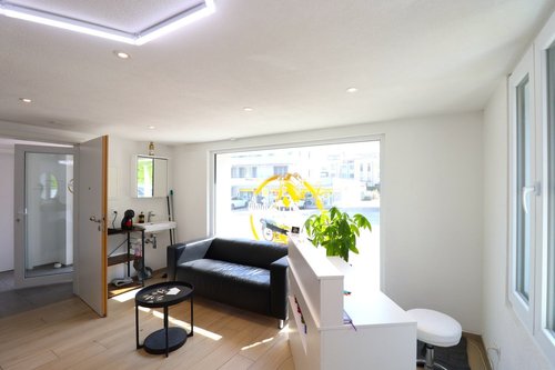 Die Räumlichkeit besticht durch ihre moderne Einrichtung und flexible Gestaltungsmöglichkeiten. Die grossen Fenster sorgen für eine helle und einladende Atmosphäre, perfekt für ein professionelles Arbeitsumfeld. Die zentrale Lage in Bischofszell garantiert eine gute Erreichbarkeit für Kunden und Mitarbeiter.