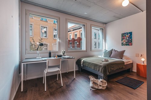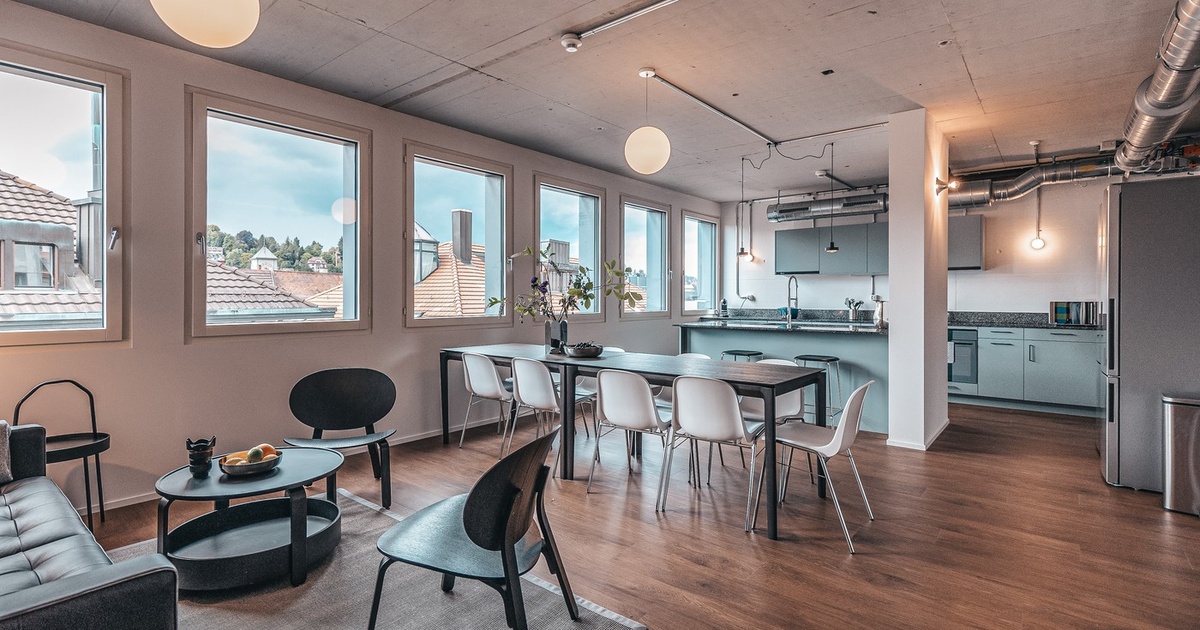english version below TomoDomo Coliving - Connect | Enjoy | Grow Coliving ist eine Wohnform, wo Menschen bewusst ihren Lebensraum teilen, um Beziehungen aufzubauen, Erfahrungen zu teilen und gemeinsam zu wachsen. Wir sind überzeugt: zusammen ist einfach schöner als allein. Domo Fabric - Dein Zuhause Bei uns wohnst du nur 5 Gehminuten vom Bahnhof und der Altstadt von St. Gallen entfernt, mit allen coolen Bars und Restaurants. Unsere grossen Gemeinschaftsküchen laden ein zum gemeinsamen Kochen und Geniessen. Die Dachterrasse bietet einen wunderschönen Blick über die Dächer von St. Gallen und in unserem Coworking kannst du konzentriert arbeiten. Dein Zimmer Zu deiner privaten Suite (ca 17m²) mit eigenem Badezimmer gehört eine vollausgestattete Gemeinschaftsküche (ca 40m²). Alle anderen Gemeinschaftsbereiche wie Coworking& Lounge und Dachterrasse dürfen selbstverständlich mitbenutzt werden. Die Zimmerpreise starten ab CHF 845.- pro Monat, je nach Zimmerkategorie. Alle Zimmerpreise sind inkl. Nebenkosten (Strom, Wärme, Wasser, Wifi, Reinigung Gemeinschaftsräume, Waschmaschine & Trockner). Möchtest du das Domo Fabric besser kennenlernen? Buche jetzt einen Termin mit uns auf unserer Website: www.tomodomo.ch Wir freuen uns auf Dich! –----------------------------------------- TomoDomo Coliving - Connect | Enjoy | Grow Coliving is a form of living where people consciously share their living space in order to build relationships, share experiences and grow together. We are convinced: together is simply better than alone. Domo Fabric - Your home Here you live only 5 minutes away from the train station and the old town of St. Gallen, with all the cool bars and restaurants. Our large communal kitchens invite you to cook and relax together. The rooftop terrace offers a beautiful view over St. Gallen and in our coworking you can get your work done. Your room Your private suite (approx. 17 m²) with its own bathroom includes access to a fully equipped shared kitchen (approx. 40 m²). All other shared areas, such as the coworking & lounge spaces and the rooftop terrace, may of course also be used. Room rates start from CHF 845.- per month, depending on room category. All room prices include additional costs (electricity, heat, water, Wifi, cleaning common areas, washing machine & dryer). Would you like to get to know Domo Fabric better? Book an appointment with us now on our website: www.tomodomo.ch/fabric We look forward to seeing you!