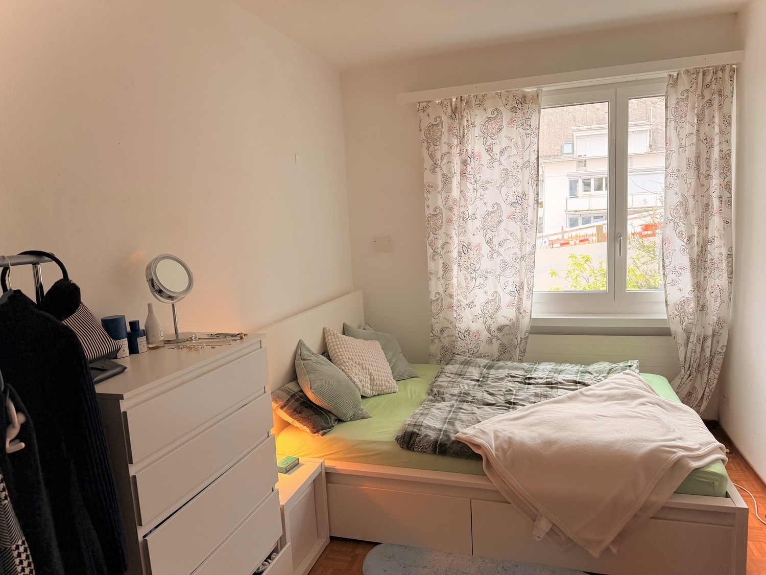English Version belowWG-Zimmer in 7er-WG am Rigiblick mit traumhafter AussichtWir sind eine 7er-WG am Rigiblick und geniessen eine beeindruckende Sicht auf Stadt, See und Berge – besonders vom Wohnzimmer und den Balkonen aus. Die Wohnung ist grosszügig (ca. 180 m²) und bietet viel Platz für gemeinsames WG-Leben und Rückzug gleichermassen.Die Wohnung verfügt über: 7 Schlafzimmer ein gemütliches Wohnzimmer mit Cheminée Küche mit Essbereich 2 Badezimmer 2 separate Toiletten 2 Balkone Keller geteilter Waschraum* geteilter GaragenstellplatzZimmer: Das Zimmer ist ca. 13m^2 groß, mit einem großen Fenster nach Nordwesten. Es verfügt über ein eigenes Badezimmer inkl. Dusche und Toilette Die vorhandenen Möbel (Bett, Nachttisch, Kommode, Kleiderstange und Tischchen) müssen übernommen werden. Der Übernahmepreis beträgt CHF 100.–Unsere WG: Wir sind keine Zweck-WG, sondern legen Wert auf ein gemeinschaftliches Zusammenleben. Wir verbringen gerne Zeit miteinander, unternehmen gemeinsam etwas und schätzen einen offenen, herzlichen Umgang. Gleichzeitig ist uns wichtig, dass Privatsphäre, Ruhe und das Bedürfnis nach Alone-Time aller respektiert wirdDeine Mitbewohner wären:Helena (zieht aus)21, Architekturstudentin an der BUW. Für das letzte Bachelorsemester geht es zurück nach Deutschland. In der Freizeit viel in Bewegung, gerne kreativ unterwegs und bekannt dafür, regelmässig zu backen und die WG mit selbstgemachten Leckereien zu versorgen.„Das WG-Leben hier war für mich etwas ganz Besonderes: Ich habe tolle Menschen kennengelernt, neue Freundschaften geschlossen und mich sehr wohlgefühlt. Mir fällt es schwer, die WG zu verlassen und ich werde sie definitiv vermissen.“Michelle:25, arbeitet als Fachfrau Gesundheit in einem Heim für Demenzpatienten. Liebt Pflanzen (wenn du in der WG etwas Grünes entdeckst, gehört es höchstwahrscheinlich ihr). Ist die gute Seele der WG und strahlt mit ihrer positiven Art viel Freude aus. Außerdem ist sie für jede kleine Side Quest zu haben.Fabian:24, macht gerade seinen Master in Quantitative Finance. Probiert in seiner Freizeit so gut wie jede Sportart aus (wenn er sie nicht schon macht). Ist bei den meisten WG-Aktivitäten dabei und für jeden Spaß zu haben.Olivia27, arbeitet als Kellnerin in einem japanischen Restaurant und ist gelernte Friseurin. Liest sehr gerne und viel, ist in Spanien aufgewachsen und inzwischen wieder in der Schweiz. War ein Jahr in Japan und übt weiterhin fleissig Japanisch. Zudem ist sie die Friseurin der WG (unter ihrem Messer sass hier definitiv schon jeder mindestens einmal)Sacha:25, Finance Guy und noch am Deutsch lernen (momentan etwas weniger motiviert als Maxime). Auf jeden Fall dabei, wenn es in den Ausgang geht. Sportlich und immer für eine gute Zeit zu haben.Maxime:26, arbeitet in einer Weinbar und ist auf dem Weg zum Sommelier. Lernt nebenbei fleißig Deutsch und verwöhnt die WG hin und wieder mit unschlagbaren Tartes. Sportlich, immer für einen Plausch zu haben und mit seiner positiven Art ein echter Stimmungsmacher.Matthias:34, Hauptmieter und seit vielen Jahren in der WG zuhause. Sportlich unterwegs (vom Snowboarden bis zu Kampfsportarten ist alles dabei). Organisiert hin und wieder spontane Spieleabende oder Pizza-Nights, ansonsten eher ein ruhiger Mitbewohner.Wir suchen eine/n Mitbewohner/in im Alter von 20–28 Jahren, der/die sozial und offen ist und Freude daran hat, sich aktiv ins WG-Leben einzubringen. Du solltest verantwortungsbewusst im Umgang mit Sauberkeit und den anfallenden Aufgaben im Haushalt sein – das ist uns besonders wichtig, damit das Zusammenleben in einer so großen WG reibungslos funktioniert. Am liebsten weiblich, aber grundsätzlich freuen wir uns über jede nette, aufgeschlossene Person, die Lust auf gemeinsames Wohnen hat.Wenn du Interesse hast, schreib uns bitte ein paar Sätze über dich:Wer bist du, was machst du aktuell und wie stellst du dir das Zusammenleben in einer WG vor? Wir freuen uns, von dir zu lesen :))//Room in a 7-Person Flatshare at Rigiblick with Stunning ViewsWe are a 7-person flatshare at Rigiblick, enjoying breathtaking views of the city, the lake, and the mountains—especially from the living room and the balconies. The apartment is spacious (approx. 180 m²) and offers plenty of room for both shared flat life and personal retreat.The apartment features: 7 bedrooms A cosy living room with a fireplace Kitchen with dining area 2 bathrooms 2 separate toilets 2 balconies Cellar Shared laundry room* Shared garage parking spaceThe Room: The room is approx. 13 m², with a large north-west-facing window. It comes with its own private bathroom, including a shower and toilet.The existing furniture (bed, bedside table, chest of drawers, clothes rack, and small table) must be taken over. The take-over price is CHF 100.–About Our Flatshare: We are not a “functional” flatshare; we value communal living. We enjoy spending time together, doing things as a group, and appreciate an open, warm atmosphere. At the same time, privacy, quiet, and personal alone-time are respected by everyone.Your Potential Flatmates:Helena (moving out) 21, Architecture student at BUW. She is returning to Germany for her final bachelor semester. Active and creative in her free time, known for regularly baking and treating the flatshare to homemade goodies."Living here has been very special: I’ve met amazing people, made new friendships, and felt very comfortable. Leaving the flatshare is hard, and I will definitely miss it."Michelle 25, works as a health specialist in a care home for dementia patients. Loves plants (if you see something green in the flatshare, it’s probably hers). She is the heart and soul of the flatshare, spreading joy with her positive energy. Always up for any little adventure.Fabian 24, currently completing a Master’s in Quantitative Finance. Tries almost every sport in his free time (if he’s not already doing it). Participates in most flat