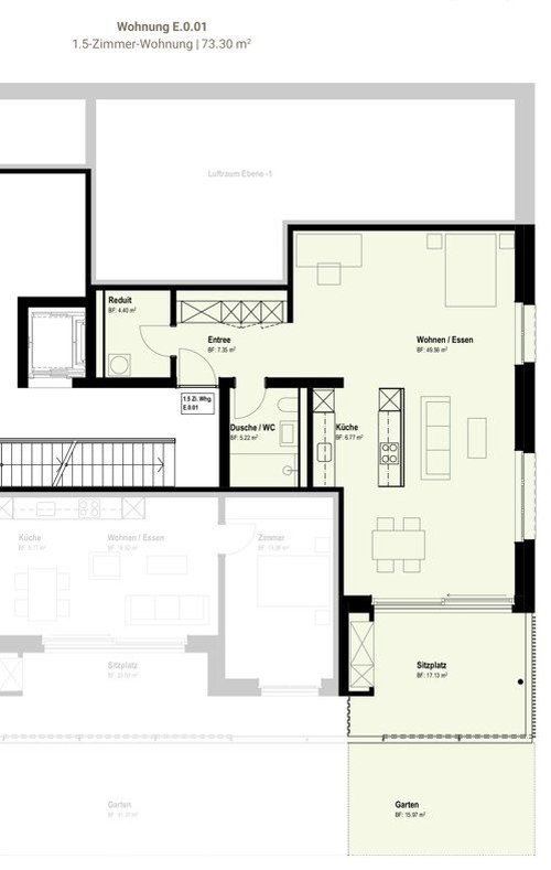 Ab Herbst 2026 stehen Ihnen noch zwei, grosse 1.5-Zimmerwohnungen im Erdgeschoss zur Erstvermietung zur Verfügung - ideal für Singles, Pendler oder Wochenaufenthalter. Die Wohnungen überzeugen durch moderne Architektur und einen grosszügigen Grundriss. Im Inserat finden Sie Bilder einer bereits ausgebauten Wohnung - es handelt sich daher um Fotos eines Vergleichsobjekt. Folgende Ausstattungen erwarten Sie: – helle und hohe Räumlichkeiten – grosszügige und offene Küche mit Kochinsel und den neusten Geräten – geölter Eichenparkett im Wohn- Ess- und Schlafbereich – Feinsteinzeugplatten in Küche, Reduit und Nasszelle – Nasszelle mit bodengleicher Dusche mit Glastrennwand – Einbauschrank im Eingangsbereich – Reduit – inkl. Kellerabteil – Gartensitzplatz Neben dem attraktiven Wohnraum profitieren Sie von: – Einer zentralen Postpaketstelle direkt auf dem Areal – Einstellhallenplätze - für Motorräder, E-Autos mit Ladestation und grosszügigen XL-Parkplätze – Vorzugskonditionen für die Nutzung des Carsharing-Angebots von Mobility Diese Angaben sowie der in diesem Inserat angegebene Mietzins beziehen sich auf die 1.5-Zimmerwohnung E.0.01 im Haus E dieser Überbauung. Alle Weiteren, für Sie wichtigen Informationen zu Mietzinsen, Grundrisse, der Lage, etc. aller verfügbaren Wohnungen, haben wir für Sie auf einer Homepage, zusammengefasst. Die zentrale Lage der Überbauung bietet nicht nur eine bequeme Erreichbarkeit, sondern ermöglicht es auch, die umliegenden Annehmlichkeiten, Geschäfte und Dienstleistungen in kürzester Zeit zu erreichen. Reiden verfügt über eine hervorragende Verkehrslage mit Direktanschlüssen an den Öffentlichen Verkehr und an die Autobahn A2. Mit der Photovoltaik Anlage auf dem Dach wird ein beträchtlicher Teil an elektrischer Energie selber produziert. Haben wir Ihr Interesse geweckt? Wir freuen uns auf Ihre Kontaktaufnahme! Freundliche Grüsse Das AVIDA-Team AVIDA - kompetent in Immobilien