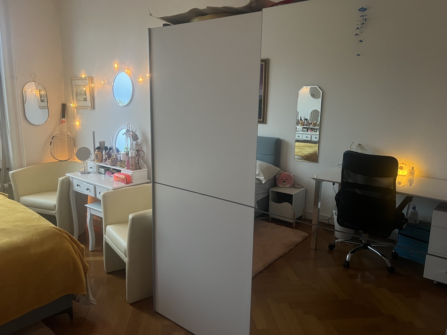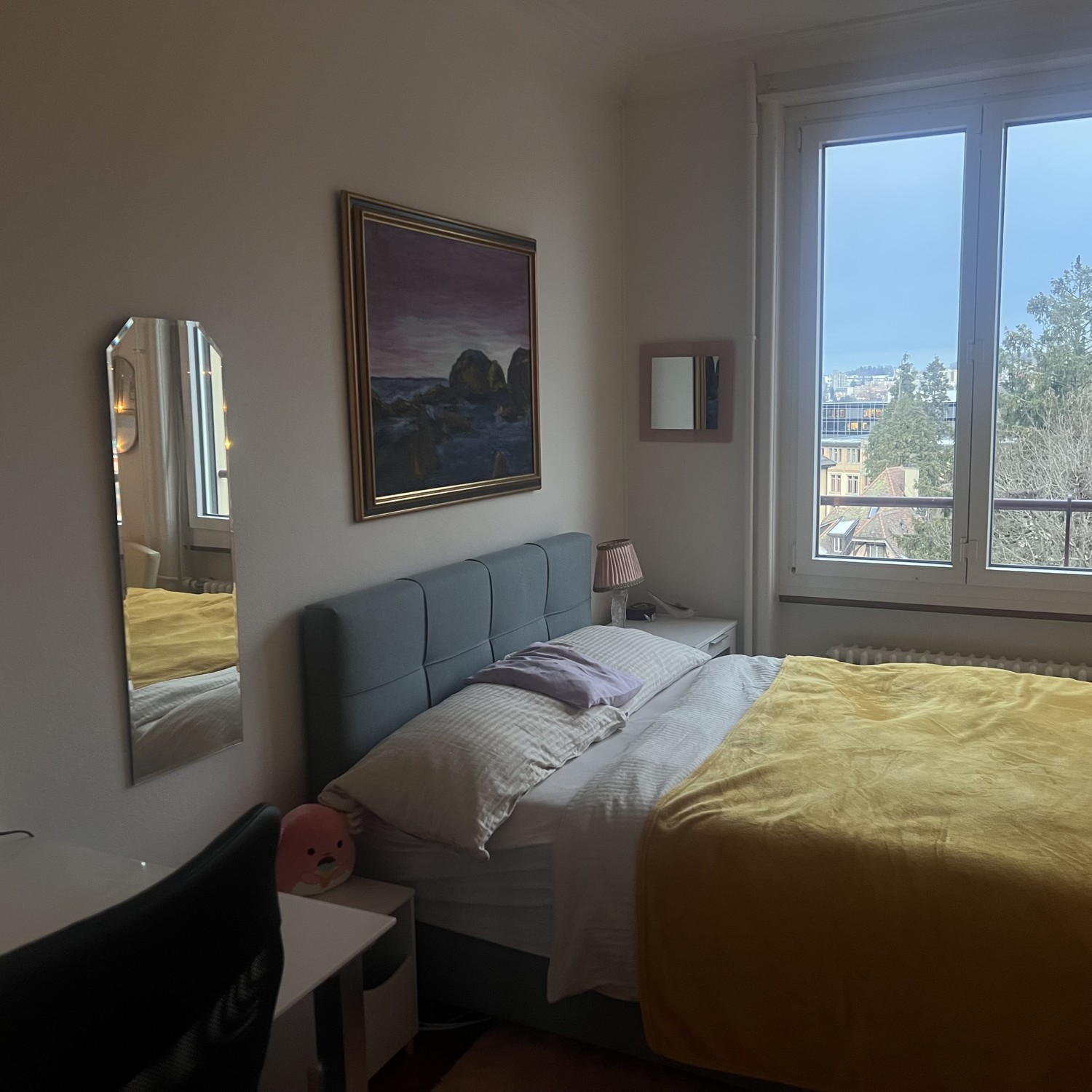 Cerchiamo ragazze!Scopri questo elegante appartamento condiviso con una simpatica coinquilina, di due locali, 53 metri quadrati situato al settimo piano di Boulevard de Pérolles 75 a Friburgo. Disponibile immediatamente, questo appartamento si trova a - 1 minuto a piedi dall’università Regina Mundi, 3 minuti a piedi dall’università di Pérolles e 14 minuti in bus dall’università di Miséricorde.- 1 minuto a piedi dalla fermata industrie dove passano bus continuamente per andare ovunque- 2 minuti dalla Denner dove giornalmente ci sono offerte molto convenienti per studenti- 13 minuti in bus dall’activ fitness di Friburgo- la via Boulevard de Pérolles è inoltre ricca di ristoranti e cibo da asporto, molto pratico per chi desidera cambiare ogni giorno: ristoranti italiani, kebab e vietnamita sono solo alcune delle principali offerte.La camera dispone di(vedi foto):- Letto boxspring con ampio spazio usato molto poco. 140x200- Due poltrone confortevoli - Ampio armadio con specchio usato molto poco- Comodino L’appartamento dispone di - cucina condivisa ammobiliata - bagno condiviso ammobiliato- entrata con appendi giacche e scarpiera- balcone in cucina - ascensore- lavatrice e asciugatrice (del condominio)- ampia vista sulla grande via Boulevard de PérollesLa camera viene venduta con il mobilio descritto sopra, che ammonta a 1528.-. Se sei interessato non esitare a contattarmi qui😊.L’affitto poi sarà da dividere in 2