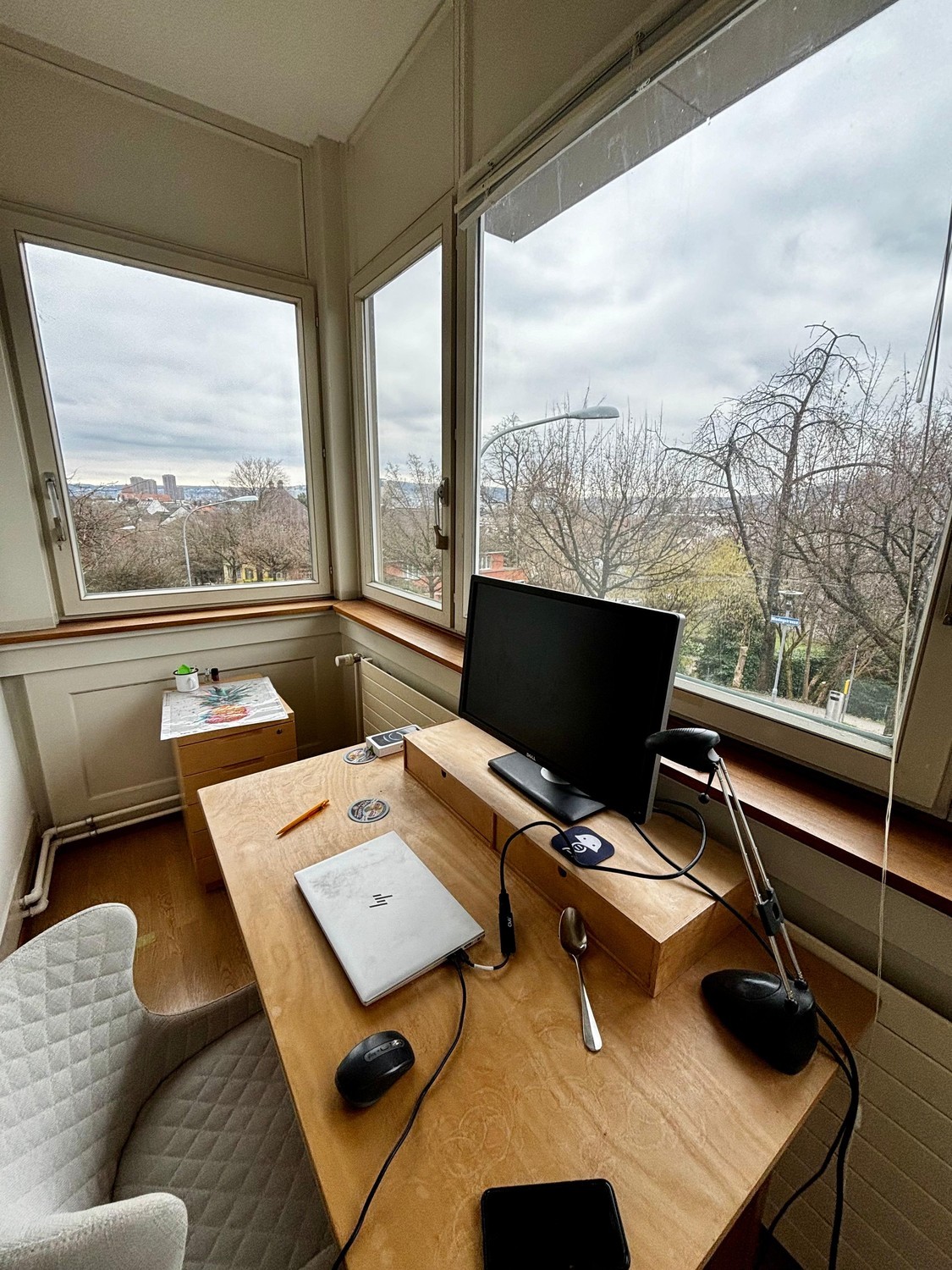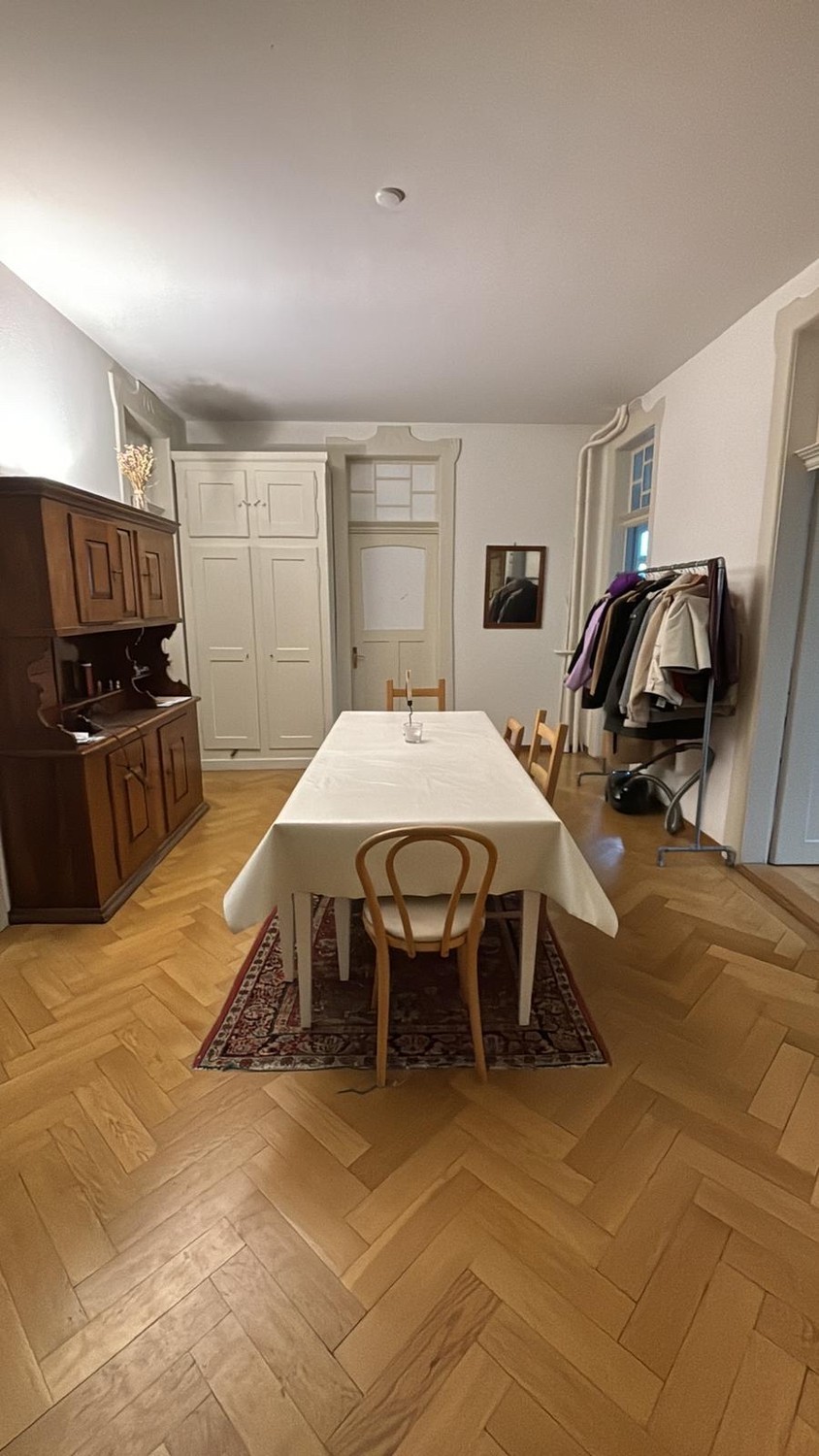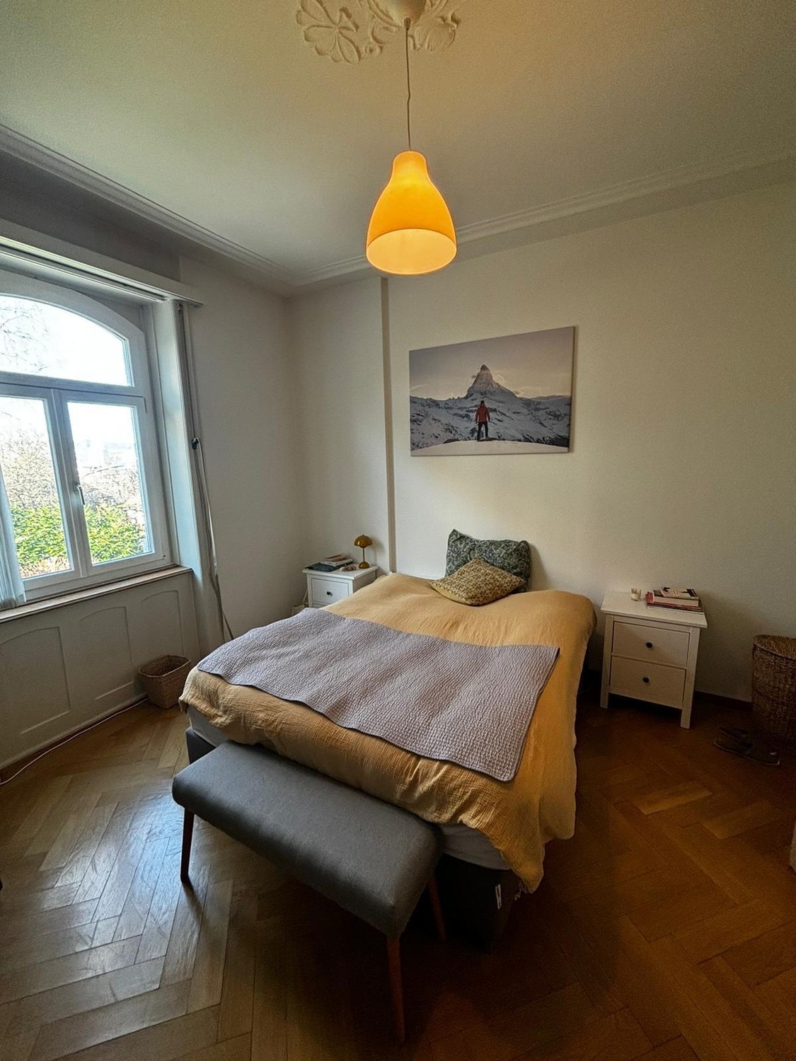 Beautiful & bright room for rent in a 3-person WG.The flat is quite spacious and includes:- A bright living room with two home office spots with a view, and a TV- A fully equipped kitchen (including a dishwasher) with a small table- A dining room with a large table- 1 bathroom- 1 separate toilet- 3 bedroomsThe flat and the room are fully furnished. Washing machine and dryer also included. The flat is centrally located (tram stop: Schmiede Wiedikon), with a nice view of the park and a 5–10 minute walk to Migros and Coop.The two flatmates are 27-year-old women working in Zurich.The move-in date would be April (flexible) until the end of August.