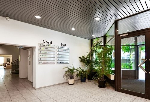 Objektbesonderheiten: • Mix aus Open Space, Büros und Sitzungszimmern • Offener Grundriss mit Gestaltungsmöglichkeiten • Deckenhöhen bis ca. 3.1 Metern • Breite Fensterfronten • IT-Infrastruktur mit Bodendosen • Starkstromanschluss • Zwei Personenlifte (Traglast je 1‘000 kg) • Getrennte WC-Anlagen und IV-WC zur Mitbenutzung • Gut ersichtliche Beschriftungsmöglichkeiten • Begrünter Aussenbereich • Lagerfläche im UG • Tiefgaragenparkplätze