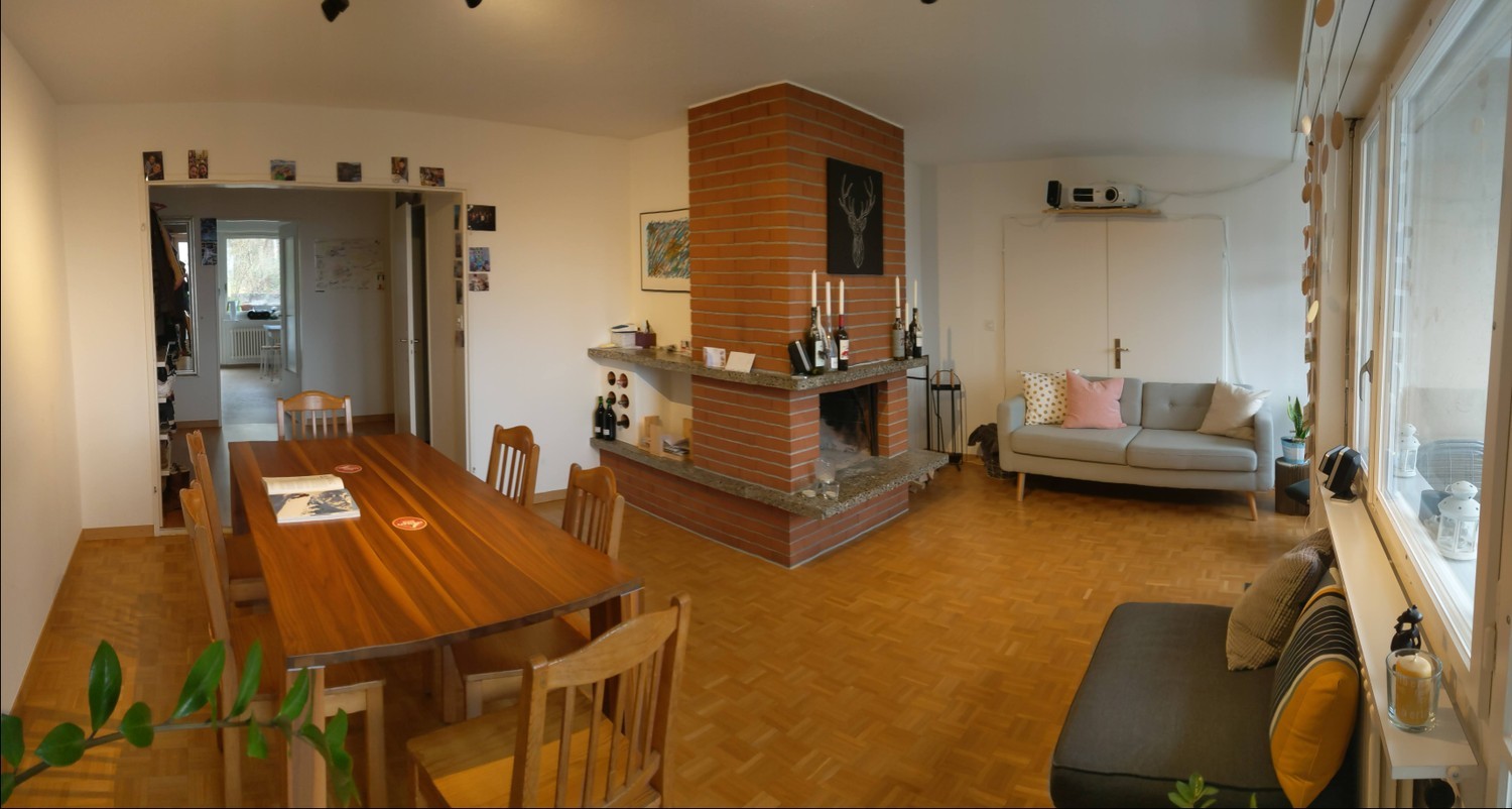 Wir wohnen in einer charmanten Wohnung mit Cheminée und bester Aussicht im schönen Winterthurer Quartier Veltheim. Die Wohnung hat zwei Badezimmer, eine grosse Küche mit eigener Waschmaschine sowie zwei Balkone. Bei schönem Wetter sieht man vom Wohnzimmer aus bis in die Berge. Dein Zimmer ist heimelige 10 m2 gross, ruhig und hat ein Fenster gegen Norden. Der Coop liegt nur 2’ entfernt, mit dem Velo bist du in 10’ in der Stadt, am Bahnhof oder der ZHAW. Du bist von hier aus auch schnell im Wald oder in 5’ in der Wolfi-Badi. Wir sind: Lona, 29i, hat Wirtschaft studiert und arbeitet in der Speditionsbranche. Kimia, 28i, schliesst gerade ihren Master in Data Science an der ZHAW ab. Benji, 32i, hat Maschinenbau studiert und arbeitet Teilzeit in einem Ingenieurbüro. Da unser 4tes WG-Gspänli im Mai auszieht, suchen wir per 1. Juni einen neuen Mitbewohner. Wir möchten die Geschlechterverteilung gerne so beibehalten und suchen deshalb explizit ein männliches Mitglied für unsere WG. Wir haben alle unseren eigenen Tagesrythmus, schätzen aber auch den gemeinsamen Austausch in der Küche, Pizzaessen am Mittwoch oder einem spontanen TV-Abend. Da Kimia im Iran aufgewachsen ist, unterhalten wir uns oft auf Englisch und deshalb solltest du dich auch bei einem Schwatz in dieser Sprache wohlfühlen. Du solltest etwa in unserem Alter sein, das WG-Leben schätzen aber auch deinen eigenen Interessen nachgehen. Ob du studierst oder arbeitest, spielt uns keine Rolle, aber wir wünschen uns jemanden der vorhat für mind. 1 Jahr zu bleiben. Wir legen Wert auf Ordnung und würden es sehr schätzen, wenn auch du ordentlich bist. Wenn du dich von dieser kurzen Beschreibung angesprochen fühlst, freuen wir uns sehr über eine kurze Nachricht mit ein paar Worten zu deiner Person.