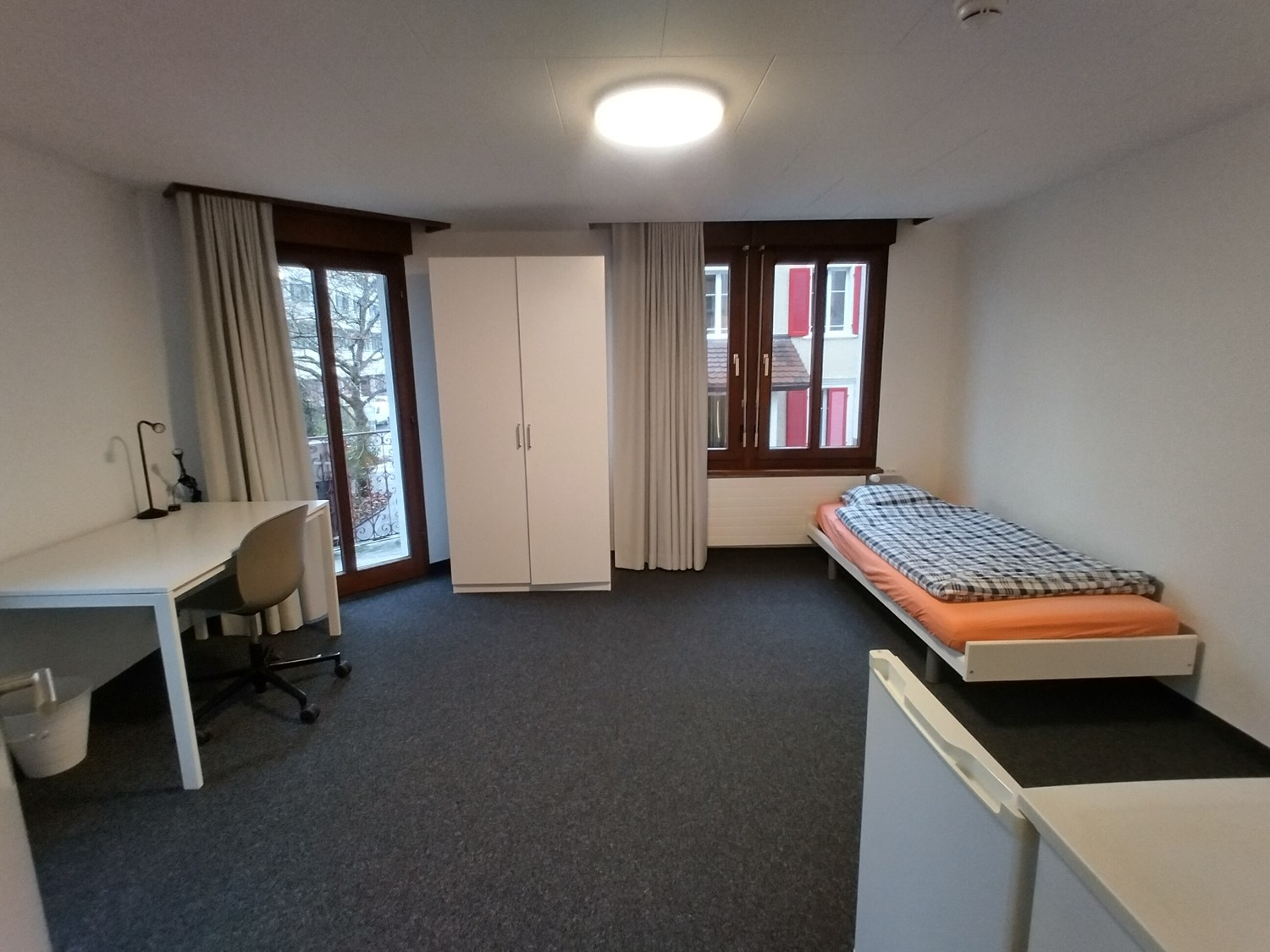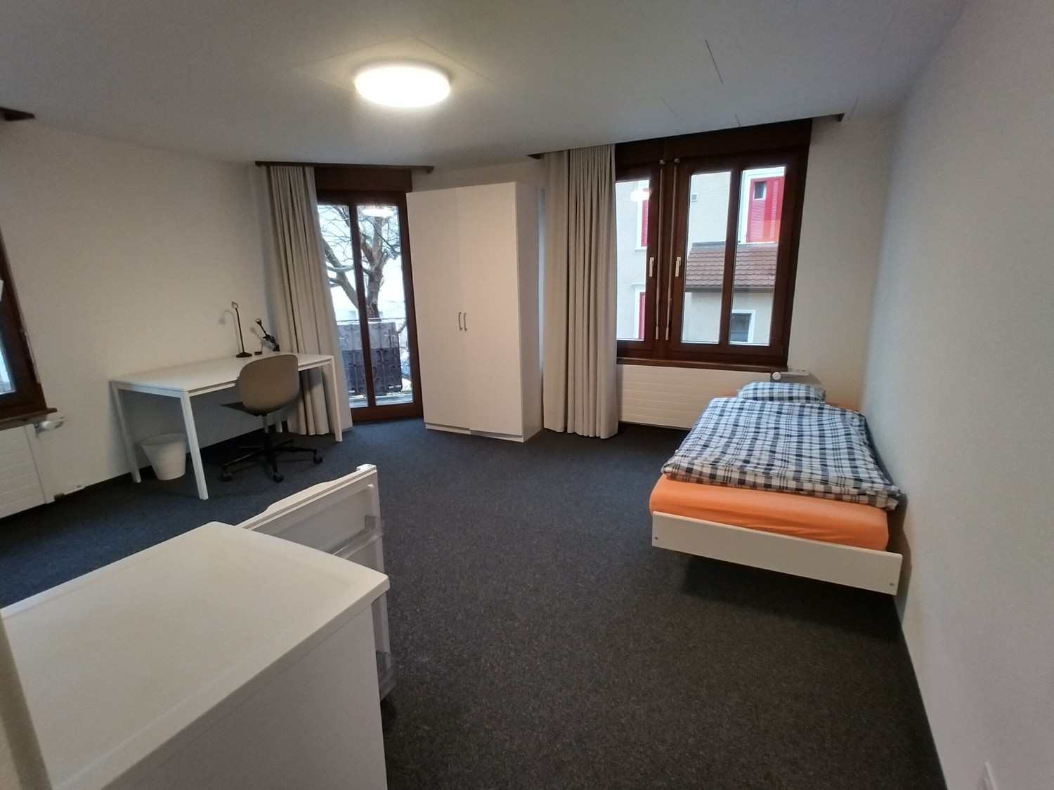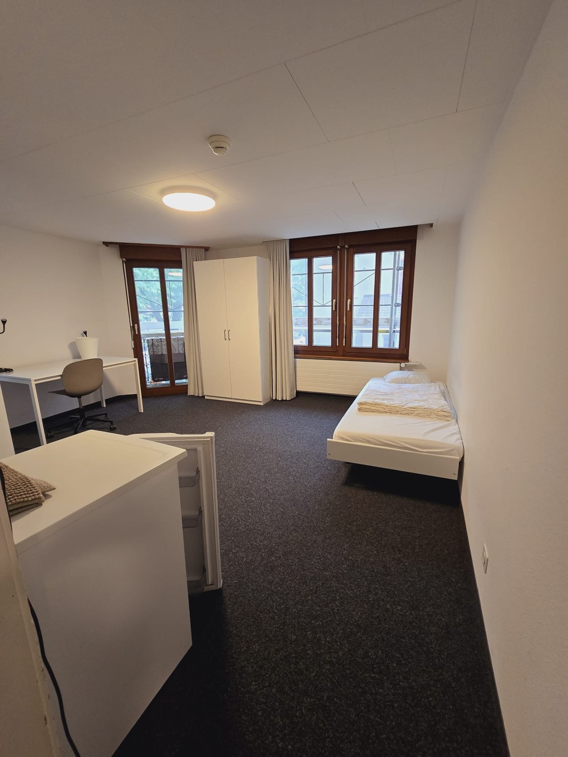 Dein neues Zuhause: Dieses großzügige, voll möblierte Zimmer bietet alles, was du für ein komfortables Studentenleben brauchst: Bett, Kleiderschrank, Arbeitsplatz und Kühlschrank. Das eigene, frisch renovierte Badezimmer sorgt für Privatsphäre, während der kleine Balkon perfekt ist, um die frische Luft zu genießen. Gemeinschaft & Leben: Du lebst in einem modernen Studentenhaus mit 22 Zimmern auf 4 Etagen. Drei voll ausgestattete Gemeinschaftsküchen stehen zur Verfügung – ideal, um zu kochen, neue Leute kennenzulernen und sich auszutauschen. Die Allgemeinräume werden regelmäßig gereinigt, sodass du dich entspannt auf dein Studium konzentrieren kannst. Rundum-sorglos-Miete: Im Mietpreis sind alle Nebenkosten inklusive, von Strom bis Internet – also keine versteckten Kosten. Top-Lage: 5 Minuten zu Fuß in die Innenstadt 12 Minuten mit den öffentlichen Verkehrsmitteln zur UniversitätMehr entdecken & Besichtigung: Weitere Angebote der Homestay AG Schweiz Jetzt Online-Besichtigung buchen