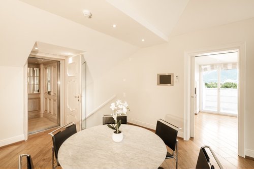The apartment enjoys a marvellous panoramic view and is conveniently accessible via a lift that leads directly to the penthouse, guaranteeing maximum privacy and comfort. A wonderful natural park, outdoor swimming pool and Jacuzzi, spa with indoor pool and Technogym-equipped fitness room complete the offer.