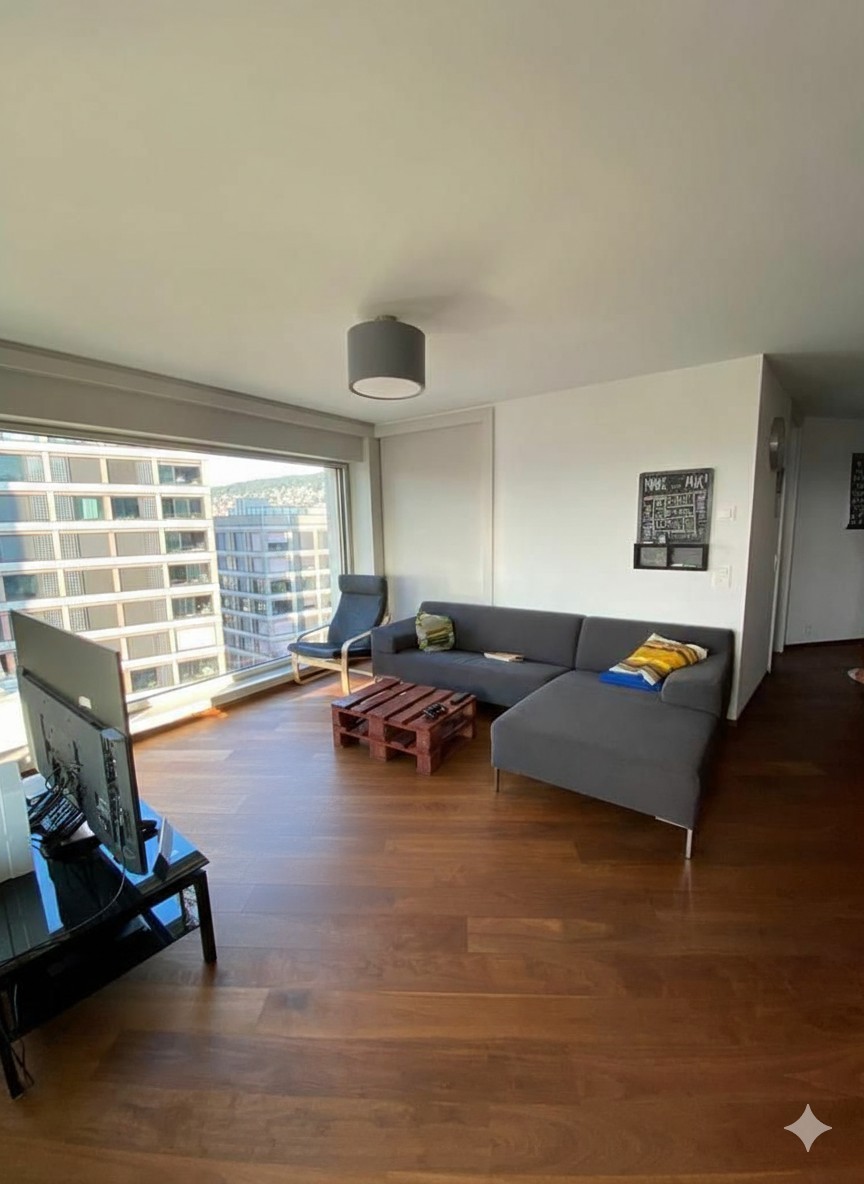 Spacious room available in a beautiful and modern apartment located on Europalle Street, one of Zurich's most well-connected and vibrant areas. The flat is shared with two other friendly tenants and offers a comfortable and welcoming living environment. The available room comes with its own private bathroom. The living room is bright and cozy, with large windows offering a beautiful view of Zurich's skyline. The modern kitchen is fully equipped with all essential appliances, making it ideal for cooking and shared meals. The apartment also features a dedicated laundry room with both a washing machine and a dryer, providing everything needed for convenient day-to-day living. The furniture in the common areas is included, ensuring a smooth and easy move-in. The furniture currently in the room is available for sale to the new tenant. In addition, the building includes a bicycle parking area and private storage space( floor -2), offering extra room for personal belongings. Visits will start at the beginning of November, and the room will be available end of November. Variable Expenses: 30/50 CHF This is an excellent opportunity to live in a well-maintained apartment in a prime location, close to public transport, shops, and other amenities.