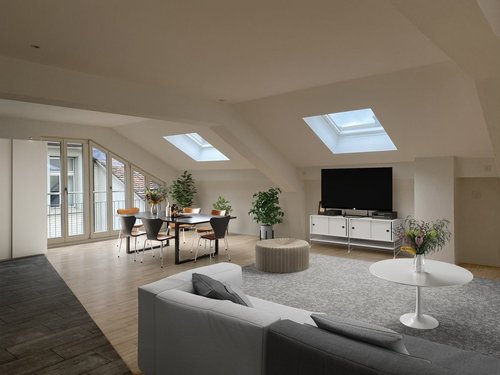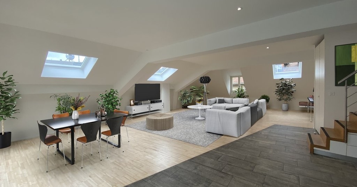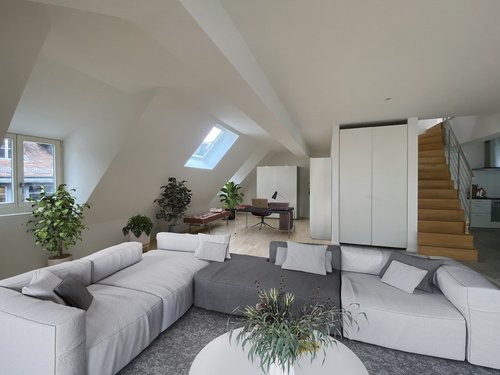 An zentraler Lage, wenige Schritte vom Hauptbahnhof Bern, vermieten wir nach Vereinbarung eine Loftwohnung im 4. und 5. Obergeschoss – Sehr grosszügige und helle Wohnung ohne Raumunterteilung – Moderne, offene Küche – Heller Ahornparkett und graue Plattenbeläge – Nasszelle mit Dusche und Nasszelle mit Badewanne – Eigener Waschturm – Kleine Dachterrasse – Aufzug mit Besuchersteuerung – Kein Keller Die Wohnung befindet sich in einem Geschäftshaus an der Aarbergergasse 46 und ist in den obersten Stockwerken des ruhigen Hinterhauses gelegen. Vielfältige Einkaufsmöglichkeiten, ein grosses gastronomisches Angebot, Freizeiteinrichtungen und Naherholungsgebiete sind in unmittelbarer Nähe. Bei den Bildern im Inserat handelt es sich um Visualisierungen, welche Möblierungsvorschläge zeigen. Haben wir Ihr Interesse geweckt? Dann melden Sie sich gerne für einen Besichtigungstermin! Wir freuen uns auf Ihre schriftliche Kontaktaufnahme.