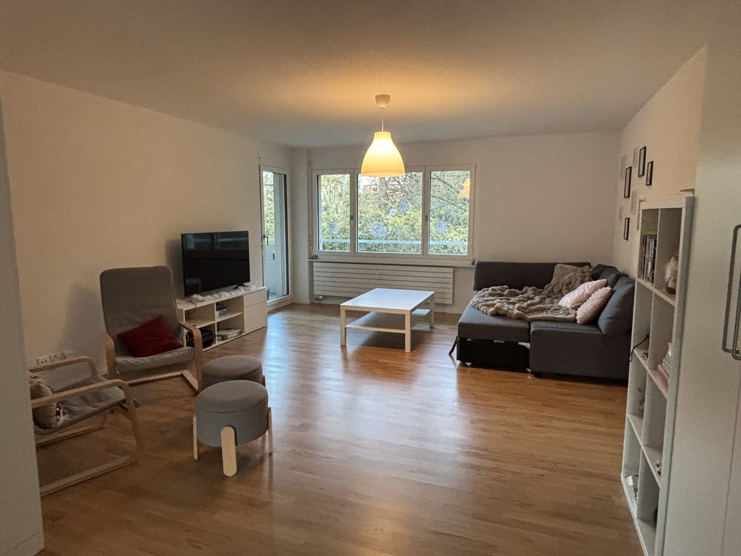 Über die Wohnung und das Zimmer: Schönes Zimmer mit Pakettboden, grossem Fenster und Abendsonne. Wir haben ein grosses Wohnzimmer mit einem gemütlichen Sofa, Fernseher und Zugang zu einem Balkon. Die Umgebung ist ruhig und Migros/ Denner/ Apotheke/ Post sowie Bahnhof sind innerhalb von 1-2 Gehminuten erreichbar. Im Keller gibt es einen Waschraum mit Waschmaschine, Tumbler und Secomat zur Mitbenutzung. Die Wohnung wurde 2024 renoviert. Über uns: Wir sind drei Studentinnen 20 und 21 Jahre alt. Abends beim Znacht verbringen wir gerne etwas Zeit zusammen, aber schätzen es auch individuellen Freiraum zu haben. Wir suchen: Wir suchen eine/n aufgeschlossene/n humorvolle/n Sudent/in bis 25 Jahre, der/die unsere WG vervollständigt. Miteinander schätzen wir einen respektvollen Umgang. Ausserdem ist es uns wichtig, dass du nicht rauchst und einen gewissen Sinn für Ordung und Sauberkeit hast.
