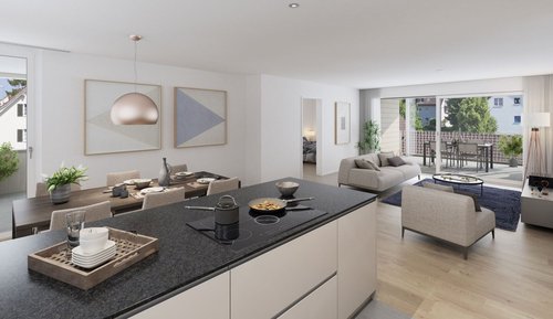 In den per 1. Juli 2026 bezugsbereiten Mehrfamilienhäusern an der Hauptstrasse 6 und Brunnenstrasse 8 in Bottighofen, entstehen 19 neue, ästhetische Wohnungen mit einer Tiefgarage. Einkaufsmöglichkeiten sowie der Bodensee sind nur wenige Gehminuten entfernt. Der Innenausbau ist hochwertig mit Einbauschrank im Entrée, zeitlosen Parkettböden und modernen Küchenausstattungen. Schwellenlose Duschen erleichtern Nutzung und Pflege, Waschmaschine und Tumbler gehören zur Standardausrüstung jeder Wohnung. Der Keller ist den Wohnungen zugeordnet und im Mietpreis inbegriffen. Es werden Trocken- sowie Veloräume zur Mitbenutzung erstellt. Der eigenproduzierte Strom der Photovoltaikanlage wird direkt von den Mietern genutzt. Die Stromabrechnung erfolgt über die Hausverwaltung. Somit erhalten Sie als Bewohner keine separaten Stromrechnungen der Technischen Betriebe. Die Tiefgarage wird für das Aufladen von Elektroautos vorbereitet. Das bietet Ihnen dieses Neubauprojekt: \+ durchdachte Grundrisse \+ helle Räume mit hoher Wohnqualität \+ hochwertiger Ausbau im Eigentumsstandard \+ einfachverglaste Loggia / Balkon \+ Photovoltaikanlage mit Energiemanagement-System (50.- Akonto pro Monat für das ZEV. Im obenerwähnten Bruttomietzins nicht eingerechnet) \+ Minergie - P Standard \+ Erstbezug per 01. Juli 2026 \+ Tiefgaragenplatz kann dazu gemietet werden Wir freuen uns auf Ihre Kontaktaufnahme.