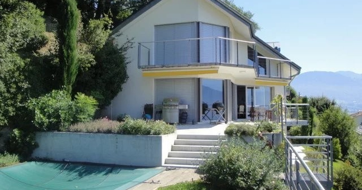 Villa individuelle avec vue panoramique sur le Léman Belle villa individuelle sur 3 niveaux jouissant d'une vue panoramique sur le lac, dans un environnement calme et verdoyant, composée comme suit : Étage – Hall d'entrée avec accès au garage – Deux chambres avec accès sur le balcon et vue sur le lac – Une salle de bains et un WC séparé Rez – Cuisine agencée et ouverte sur le séjour avec cheminée et accès sur la terrasse – Une chambre avec accès extérieur – Une salle de douche/WC Rez inférieur – Couloir desservant : – Trois chambres avec accès extérieur et entrée indépendante – Salle de douche/WC – Buanderie privée – Cave – Local technique Une piscine extérieure complète ce bien d'exception. Loyer : CHF 5'500.- / mois + charges individuelles.