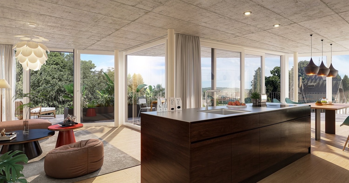 Ein Neubau mit einzigartigem Charakter und höchstem Wohnkomfort erwartet Sie! Das Gebäude besticht durch seine elliptische Form mit Sichtbeton und grosszügigen, umlaufenden Terrassenflächen auf allen drei Geschossen. Eingebettet in einen riesigen Park mit altem Baumbestand, Sonnenwiese und hochwertiger Umfriedung geniessen Sie eine zentrale und dennoch ruhige Lage, umgeben von Quartierstrassen und nur zwei Villen. Der Bahnhof, Einkaufsmöglichkeiten und weitere Infrastruktur sind bequem erreichbar. Die Einstellplätze sind für Wallbox Smart-Systeme vorbereitet - auch im Veloraum. Das grosszügige Entrée empfängt Sie mit einer modernen Sisal-Schmutzschleuse. Im Attikageschoss sorgt ein Oblicht für zusätzliches Tageslicht. Die Treppe mit massiven Eichentritten und einem Handlauf aus Eiche unterstreicht die hochwertige Materialwahl. Ein besonderes Highlight bildet die Photovoltaikanlage auf dem Dach, die nachhaltige Energie liefert und den zukunftsorientierten Anspruch des Gebäudes unterstreicht. Ergänzt wird das Energiekonzept durch eine Luft-Wasser-Wärmepumpe für umweltfreundliches Heizen und Warmwasser. In den Wohnungen sorgt Freecooling für angenehme Temperaturen an warmen Tagen - ganz ohne aktive Kühlung. Die Fussbodenheizung schafft ein behagliches Wohnklima mit gleichmässiger Wärmeverteilung. Die 3.5-Zimmerwohnungen im Attikageschoss bieten ca. 113 m2 bzw. 108 m2 Wohnfläche und jeweils eine grosse Terrasse von ca. 98 m2. Auch hier sorgen Deckenkühlung, Komfortlüftung, bodentiefe Fenster und hochwertige Materialien für ein exklusives Wohngefühl. Die Wohnungen verfügen über zwei Schlafzimmer, ein grosszügiges Entrée, zwei Bäder und einen Reduit. Einstellplätze können für CHF 150.- pro Monat dazu gemietet werden. WHG 3.200 - Attika: Nettomietzins: 3'300.00 CHF zzgl. HKNK akonto 250.00 CHF Haben wir Ihr Interesse geweckt? Kontaktieren Sie uns gerne für weitere Informationen, eine persönliche Beratung oder zur Vereinbarung eines Besichtigungstermins. Wir freuen uns darauf, Ihnen die Park-Apartments persönlich vorzustellen!