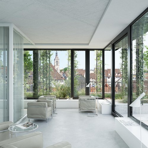 Ihre Vorteile • Zeitgemässer Ausbaustandard mit attraktiven Geschossgrössen ab 260m² bis 975m² • Qualitativ hochwertige Flächen: Helligkeit durch raumhohe, umlaufende Glasportale • Begrünte Terrassen mit hoher Aufenthaltsqualität • Repräsentativer Eingangsbereich • Traditionsreiche und repräsentative Fassade • Mitten in der Innenstand – eingebettet in breites Einkaufs-, Gastronomie- und Fitnessangebot • Beste Anbindung an den öffentlichen Verkehr • Mögliche Synergien mit dem Warenhaus und umliegenden Unternehmen