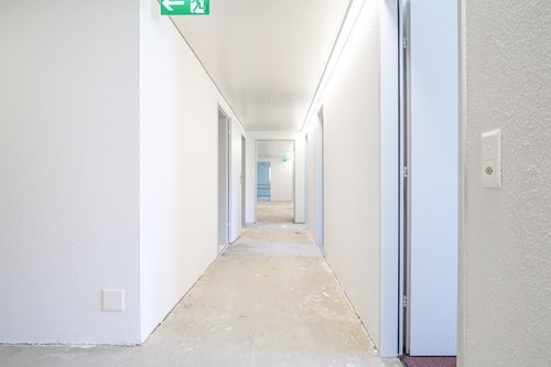 Ausstattung & Merkmale • Grosse Fensterfronten mit viel Tageslicht • Elektrische Rollläden • Automatische Beleuchtung in Korridoren und Sanitärbereichen • Beleuchtete Notausgangschilder • Lift vorhanden • Strom-, Wasser- und Abwasseranschlüsse • Ruhige und sonnige Lage • Autoeinstellplätze vorhanden (separat mietbar) • Zum Teil neu saniert (Ausbaustandard kann noch mitbestimmt werden)