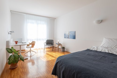 english version below TomoDomo Coliving – Connect | Enjoy | Grow Coliving ist eine Wohnform, wo Menschen bewusst ihren Lebensraum teilen, um Beziehungen aufzubauen, Erfahrungen zu teilen und gemeinsam zu wachsen. Wir sind überzeugt: zusammen ist einfach schöner als allein. Domo Tenna Kloten - Das Bergdorf in der Stadt Inspiriert von einem kleinen Bergdorf in Graubünden, steht unser Domo Tenna für ein entspanntes, inspirierendes Zusammenleben. «Unser Bergdorf» ist unterteilt in vier Quartiere. Jedes Quartier hat ein eigenes Gasthaus (die Gemeinschaftsküche) sowie Loungebereiche, wo man arbeiten oder entspannen kann. Im Erdgeschoss gibt es zudem einen Begegnungs- und Coworking Bereich. Jedes der zwei Stockwerke hat einen eigenen Waschraum mit mehreren Waschtürmen. Der Bahnhof Kloten ist nur eine Gehminute entfernt und mit der S7 ist man in 15 Minuten am Zürich HB. Community ist uns wichtig: Zusammen organisieren wir Aktivitäten und Events oder geniessen ein gemeinsames Abendessen - je nach Lust und Laune. Dein Zimmer Zu deiner privaten Suite (ca. 28 m²) mit eigenem Badezimmer gehört eine vollausgestattete Gemeinschaftsküche (ca. 40 m²). Alle weiteren Gemeinschaftsbereiche wie der Coworking- & Loungebereich, der Yogaraum und die Terrasse dürfen selbstverständlich ebenfalls mitbenutzt werden. Die Zimmerpreise starten bei CHF 1‘497 pro Monat inkl. Nebenkosten (Strom, Wärme, Wasser, Wifi, Putzmaterial, Reinigung Gemeinschaftsräume). Dazu nutzen wir noch ein gemeinsames Budget von CHF 15.- pro Monat für Ausgaben wie Gebührensäcke oder Gebrauchsgüter. Möchtest du das Domo Tenna besser kennenlernen? Geniesse unsere virtuelle Tour oder buche jetzt einen Termin mit uns: www.tomodomo.ch/tenna - Wir freuen uns auf Dich. –--------------------------------------------- TomoDomo Coliving - Connect | Enjoy | Grow Coliving is a form of living where people consciously share their living space in order to build relationships, share experiences and grow together. We are convinced: together is simply better than alone. Domo Tenna Kloten - The mountain village in the city Inspired by a small mountain village in Graubünden, our Domo Tenna stands for relaxed, inspired living. “Our mountain village” is divided into four quarters. Each quarter has its own guesthouse (the communal kitchen) and lounge areas where you can work or relax. In addition we built a large community and coworking area on the ground floor. There are washrooms with several washing machines and dryers. The Kloten train station is just a minute's walk away and the S7 takes you to Zurich main station in 15 minutes. Community is important to us: Together we organize activities and events or enjoy a dinner together. Your room Your private suite (approx. 28 m²) with its own bathroom includes access to a fully equipped shared kitchen (approx. 40 m²). All other shared areas, such as the coworking & lounge space, yoga room and terrace, may of course also be used. The room prices start at CHF 1'497 per month including utility costs (electricity, heat, water, WiFi, cleaning materials, cleaning of common rooms). In addition, we use a common budget of CHF 15 per month for expenses such as consumer goods. Would you like to get to know Domo Tenna better? Take a virtual tour or book an appointment with us now: www.tomodomo.ch/tenna - We look forward to meeting you.