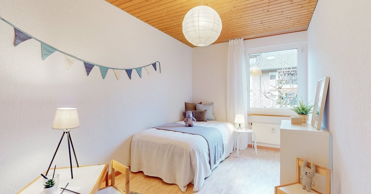 Per sofort vermieten wir diese 4.5-Zimmerwohnung im Sonnenfeldquartier. Sie können sich über folgende Vorzüge freuen: • Zwei gemütliche Balkone • Abgeschlossene Küche mit Geschirrspüler und Glaskeramik mit viel Platz und Stauraum • Drei abschliessbare Zimmer • Einbauschrank im Eingangsbereich • Badezimmer mit Badewanne und Doppellavabo • Sep. WC mit Lavabo • Eigene Waschküche im UG • Kein Lift • Einstellhallenplatz kann für CHF 110.00/mtl. dazu gemietet werden