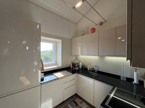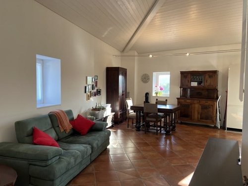 I soffitti in legno pitturati di bianco , i moderni faretti , il pavimento in cotto nella zona giorno e il pavimento in legno nella zona notte , rendono questa casa unica e piena di charm.