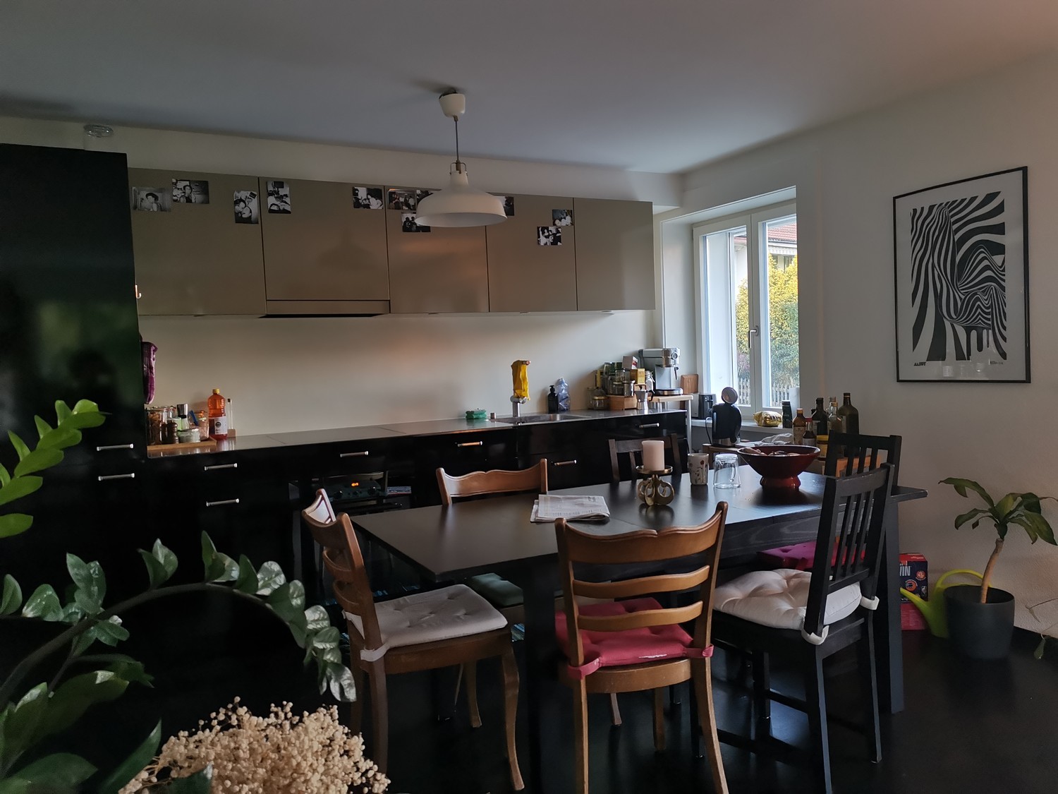 Per 01.04. wird in unserer 3er-WG in Veltheim ein Zimmer frei.(Neueinzug möglich per 01.04. oder nach Absprache 01.05.)Zur Wohnung: Die helle und gemütlich eingerichtete 4.5-Zimmer-Wohnung verfügt über einen grosszügigen, offenen Koch- und Wohnbereich mit Balkon. Zudem gibt es einen breiten Gang mit Einbauschränken sowie ein Badezimmer mit Badewanne. Ein Keller- und Estrichabteil, ein Veloraum sowie eine gemeinschaftliche Waschküche mit Trockner sind ebenfalls vorhanden. Das freie Zimmer ist ca. 12 m² gross und hat zwei grosse Fenster, die für viel Tageslicht sorgen.Zur Lage: Die Wohnung liegt nur ca. 10 Minuten mit dem Velo vom Bahnhof Winterthur entfernt und nur eine Minute vom besten Imbissladen der Stadt. Der herzige Dorfkern von Veltheim mit Coop und dem Café Kunterbunt sowie das Schwimmbad Wolfensberg sind in weniger als 5 Minuten zu Fuss erreichbar.Zu uns: Wir sind Leandra (29) und Sophia (29). Leandra arbeitet Teilzeit in der Kommunikation in Zürich. Wenn sie nicht gerade für ihren anderen Parttime-Job als Flight Attendant um die Welt reist, steht sie mit ihrer Band auf der Bühne oder spielt eines ihrer Instrumente. Sie mag Lila, Moodlights und sorgt mit ihren spontanen Wortwitzen für gute Laune. Sophia arbeitet als Primarschullehrerin in Winterthur. Zum Abschalten kocht sie gerne neue Rezepte, unternimmt etwas mit Freund*innen oder macht Yoga. Sie reist gerne an warme Orte, mag Abwechslung und ist immer für einen Schwatz zu haben.Was uns wichtig ist: Gemeinsam schätzen wir ein entspanntes Zusammenleben mit spontanen Nachtessen, Plaudereien und Ausflügen, aber auch Raum für sich. Ein sauberes Zuhause ist uns wichtig, damit sich alle wohlfühlen. Wir suchen bevorzugt eine FINTA-Person / weibliche Mitbewohnerin zwischen 25 und 35 Jahren.Es besteht die Möglichkeit, dass wir beide im Verlauf des Jahres ausziehen. In diesem Fall könnte die WG übernommen werden.Wir freuen uns auf deine Nachricht mit ein paar Infos zu dir.