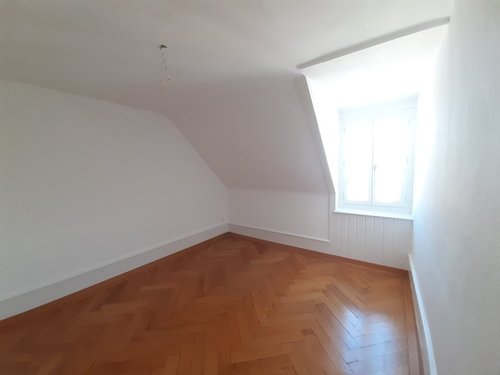 Grand appartement de 4 pièces dans les combles avec beaucoup de cachet composé comme suit : – Une cuisine agencée avec lave-vaisselle – séjour – 3 chambres – vestibule – salle de bain-WC. Rafraichissement des peintures. Idéalement situé proche de la piscine-patinoire, tennis. A proximité de la nature et de la piste-vita.