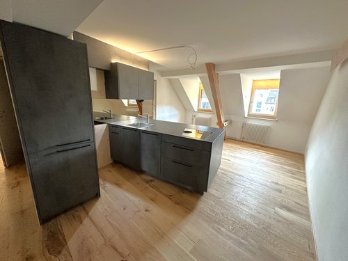 Wir vermieten diese einzigartige, modern konzipierte Stadtwohnung – ideal für urbane Menschen, die Wert auf stilvolles und ästhetisches Wohnen legen. Mit viel Liebe zum Detail wurde das historische Gebäude (Baujahr 1884) aufwendig saniert. Dabei wurde nicht nur so viel wie möglich von der alten Bausubstanz erhalten, sondern diese auch sichtbar gemacht. Kombiniert mit dem modernen und hochwertigen Ausbau verfügt die Wohnung über sehr viel Cachet. Das absolute Highlight dieser Wohnung ist die grosszügige Dachterrasse (ca. 20 m²), von der sich ein unverbaubarer Panoramablick über die Dächer der Stadt in alle Richtungen eröffnet. Lage Die perfekte Lage inmitten der pulsierenden Stadt, einen Steinwurf von der Sihl entfernt, lässt das Herz von jedem urbanen Menschen höherschlagen. Im Kreativquartier des beliebten Kreises 4 fasziniert das Leben durch seine Vielfalt, Dynamik und Energie. Die Anbindung an den öffentlichen Verkehr befindet sich in kurzer Gehdistanz. Ausbau Die Wohnung überzeugt durch ein durchdachtes Raumkonzept und hochwertige Ausstattung. Sie bietet Ihnen den Komfort von zwei modern ausgestatteten Nasszellen: eine mit Dusche, WC und Waschbecken sowie eine mit freistehender Badewanne, WC und Waschbecken. Die funktionale Küche besticht durch ästhetische Details wie LED-Beleuchtung und wurde mit hochwertigen Geräten ausgestattet. Der wunderschöne Eichenparkettboden sorgt für eine wohlige und warme Wohnatmosphäre. Nachhaltigkeit Die Bauherrschaft hat sich bewusst für eine nachhaltige Bauweise im Minergie-Standard entschieden. Mit der umweltfreundlichen Wärmepumpenheizung, der kontrollierten Lüftung und der Photovoltaikanlage (Eigenverbrauch) wird dadurch ein effizienter und ökologischer Energieverbrauch gewährleistet. Sind Sie interessiert? Wir freuen uns auf Ihre Kontaktaufnahme.