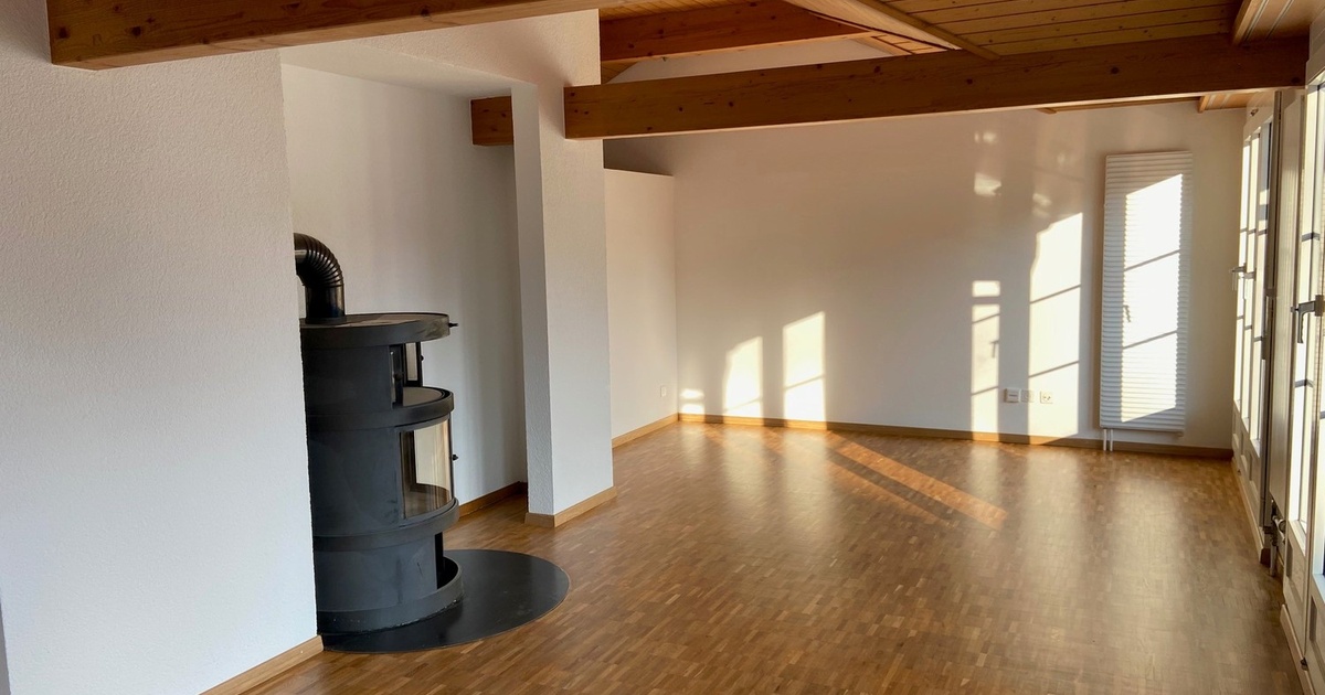 Zentral & helle 4.5 Zimmer Attika- Wohnung Diese einladende 4.5 Zimmer Wohnung bietet Ihnen ein komfortables Zuhause an zentraler Lage. Mit einem durchdachten Grundriss, hellen räumen und guter Anbindung eignet sich ideal für Paare oder Familien. Die Wohnung im Überblick: – Gemütliche Küche mit Geschirrspüler und Glaskeramikherd – schönes Bad mit Badewanne und WC – ein separates WC mit Dusche – zwei Balkone a 12m2 – drei Estriche mit einer gesamten Fläche von 45m2 – grosse Terrasse mit 53m2 – praktischer Geräteschuppen a mit 6.5m2 – Wohnzimmer mit Cheminée