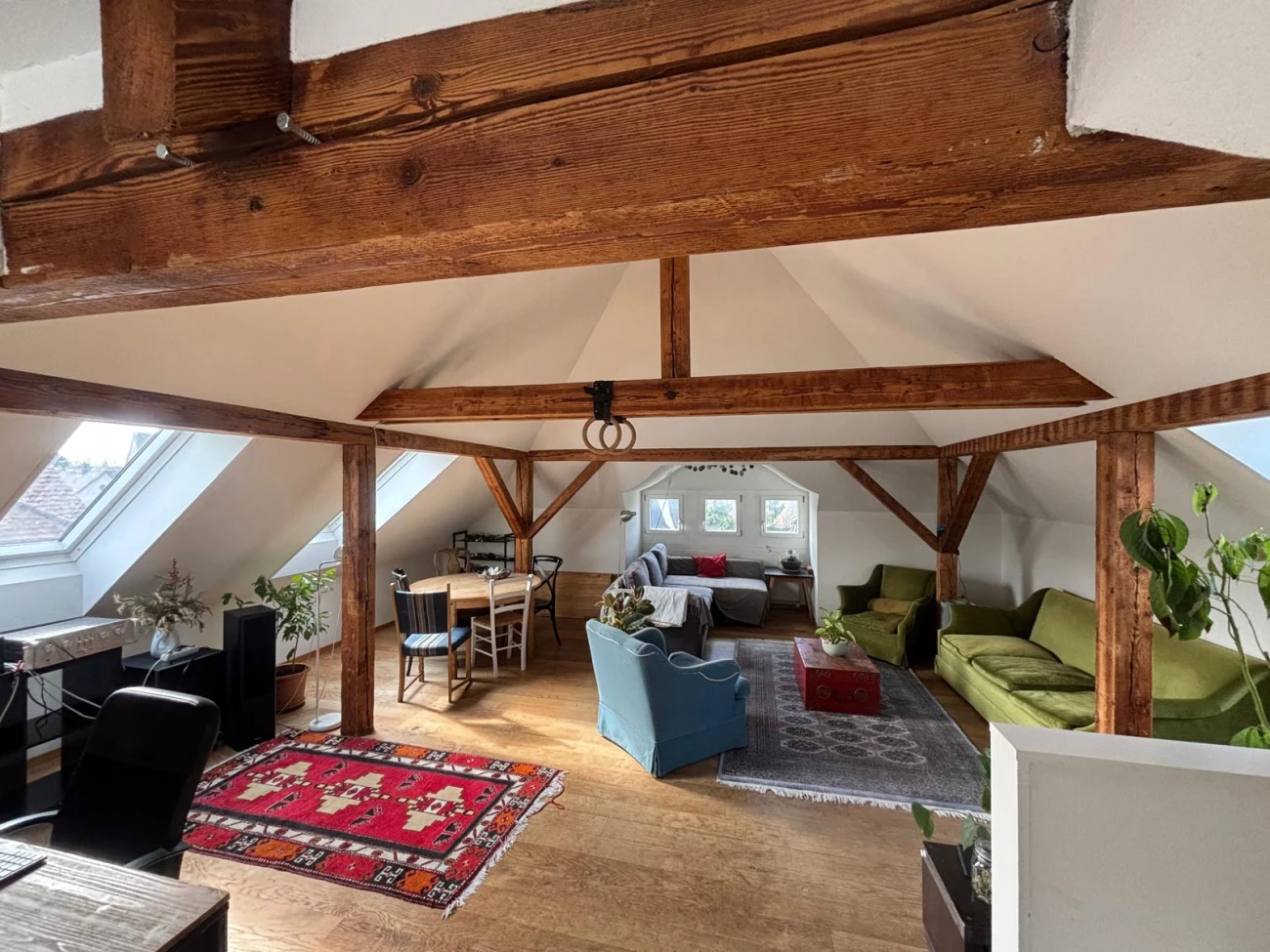 For English - please scroll belowIn unserer schönen 4er-WG am Zürichberg wird ab Mitte Mai ein Zimmer frei – vielleicht genau das Richtige für dich!Die WGDie Wohnung erstreckt sich über zwei Stockwerke und bietet mit ihrer großzügigen Dachterrasse ein echtes Highlight – perfekt zum Entspannen oder für gemeinsame Abende. Zusätzlich haben wir zwei Wohnzimmer, sodass es immer genug Platz gibt – egal ob für gemeinsames Chillen oder Rückzug. Insgesamt hat die Wohnung ca 170 m², dein Zimmer ist ca 15 m² groß. Dank 2 Badezimmern ist der Alltag angenehm entspannt. Die Lage ist ruhig und grün am Zürichberg, sehr nah an ETH und USZ, gleichzeitig sind Einkaufsmöglichkeiten und ÖV in unmittelbarer Nähe, sodass du schnell überall bist. Alle zwei Wochen kommt eine Putzhilfe, die sich um die allgemeinen Bereiche kümmert – das macht den WG-Alltag deutlich entspannter.Das ZimmerDas Zimmer ist sehr hell und überzeugt durch zwei Fensterfronten sowie eine schöne Aussicht.Es ist unmöbliert, verfügt aber über einen praktischen Einbauschrank.Ein zusätzlicher Kleiderschrank vom Vormieter sollte für einen fairen Preis ( übernommen werden.Optional können auch ein höhenverstellbarer Tisch sowie ein Bett übernommen werden, falls gewünscht.Wer wir sindDeine zukünftigen Mitbewohner sind: Jan (38) – viel unterwegs, trifft gerne Leute und organisiert ab und zu Kochabende. Viel interessiert an Theater, Kunst und Kultur. Luca (28) – liest, kocht und bouldert gerne und macht viel mit Freunden. Im Sommer ist er oft wandern oder auf dem Rad unterwegs. Politisch links und progressiv eingestellt. Felix (28) – zaubert regelmäßig selbstgemachte Pasta und bastelt gerne an seinem Smart Home herum. Am Wochenende ist er meistens in den Bergen unterwegs oder besucht Freunde.Wir führen ein entspanntes, unkompliziertes WG-Leben. Mal sitzt man zusammen auf der Terrasse oder unternimmt etwas, aber alles ohne Zwang.Die MieteDie Miete beträgt 1’295 CHF pro Monat, dazu kommen ca. 100 CHF Nebenkosten pro Monat (Internet, Putzhilfe, Elektrizität sowie TV- und Radiogebühren).Einzugsdatum: 15.05.2026Wen wir suchenWir suchen eine offene, zuverlässige und angenehme Person, die gut in unsere WG passt und Lust auf ein entspanntes Zusammenleben hat. Wir freuen uns mehr über dich zu erfahren! Bitte erzähl in deiner Nachricht ein wenig über dich selbst – Alter, Beruf/Studium, Hobbys, WG-Erfahrungen und was dir wichtig im Zusammenleben ist.-English VersionIn our lovely 4-person flatshare on Zürichberg, a room will be available from mid-May – maybe it’s just the right fit for you!The FlatThe apartment spans two floors and features a large rooftop terrace, a real highlight – perfect for relaxing or spending time together in the evenings. We also have two living rooms, so there’s always plenty of space, whether for hanging out together or some personal time. The apartment is about 170 m², and your room is approximately 15 m². With 2 bathrooms, everyday life is comfortably relaxed.The location is quiet and green on Zürichberg, very close to ETH Zurich and USZ, while shops and public transport are nearby, so you can get anywhere quickly. Every two weeks a cleaning service comes to take care of the shared areas – this makes flatshare life much more relaxed.The RoomThe room is very bright, with two large windows and a lovely view.It is unfurnished, but comes with a built-in wardrobe.There is a wardrobe from the previous tenant to be taken over for a fair price. Optionally, a height-adjustable desk and a bed can also be acquired if desired.Who We AreYour future flatmates are: Jan (38) – often out and about, enjoys meeting people, and occasionally organizes cooking evenings. Very interested in theater, art, and culture. Luca (28) – enjoys reading, cooking, bouldering, and hanging out with friends. On weekends, he's often out hiking or cycling. Politically left and progressive. Felix (28) – regularly makes homemade pasta, likes to tinker around with his smart home and is often in the mountains on weekends.We lead a relaxed, easy-going flatshare life. Sometimes we hang out together on the terrace or go out, but there’s no pressure.RentThe rent is 1’295 CHF per month, plus around 100 CHF for utilities (internet, cleaning service, electricity, as well as TV and radio fees).Moving in: 15.05.2026Who We’re Looking ForWe’re looking for an open, reliable, and pleasant person who fits well with our flatshare and enjoys a relaxed communal life. We’d love to learn more about you! Please briefly tell us about yourself in your message – age, profession/studies, hobbies, flatshare experience, and what’s important to you in shared living.
