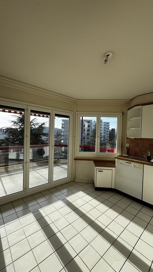 Die 5.5-Zimmerwohnung befindet sich im 5. Stock einer Liegenschaft in Villars-sur-Glâne. Die Malerei sowie der Parkettboden werden erneuert.