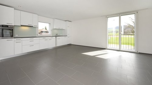 Inmitten von Madiswil, BE liegt diese grosszügige und hochwertig ausgebaute 4.5 Zimmer-Wohnung, die wir per 01.5.2026 oder nach Vereinbarung vermieten. Die Überbauung besticht durch den modernen und hohen Ausbaustandard sowie die ruhige und idyllische Lage, angrenzend an eine intakte Naturlandschaft. Eine Primarschule liegt nur ein paar Meter weiter von der Liegenschaft. Auch Einkaufsmöglichkeiten, Post und Bahnhof können innerhalb weniger Minuten zu Fuss erreicht werden. Alle Wohnungen sind lichtdurchflutet und sonnig. Dank der stattlichen Abstände zu den Nachbarhäusern ist eine vorzügliche Wohnqualität mit viel Privatsphäre garantiert. Die Wohnung bietet Ihnen noch folgende Annehmlichkeiten: Die Einzelheiten: – Baujahr 2015 – Fussbodenheizung ( individuell regulierbar in jedem Raum ) – grosszügig dimensionierter Grundriss – Entrée mit Einbauschränken – Feinsteinzeugplatten in Küche, Nasszellen und Wohnbereich – versiegelter Eichenparkett in den Schlafräumen – hochwertige Küche – mit Glaskeramik-Herd, – mit Geschirrspüler und Schubladen/Schränke mit automatischem Schliesssystem – 2x moderne Nasszellen mit DU/WC und BAD/WC – eigener Waschturm im Bad – gedeckter und sonniger Gartensitzplatz – dazugehöriges Kellerabteil – kleiner Spielplatz bei der Liegenschaft Tiefgaragenplätze können für CHF 120.00 im Monat dazu gemietet werden. Haben wir Ihr Interesse geweckt? Dann freuen wir uns auf Ihre Kontaktaufnahme über das Inserat. Bitte beachten Sie, dass die Bilder aus der 4.5 Zimmerwohnung im oberen Stockwerk stammen. Der Ausbau bleibt gleich. Die Raumaufteilung finden Sie im Grundriss.