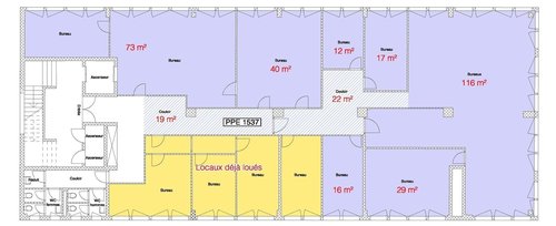Prächtige modulierbare und flexible Fläche von 303m2 zur Miete im 4. Stock.